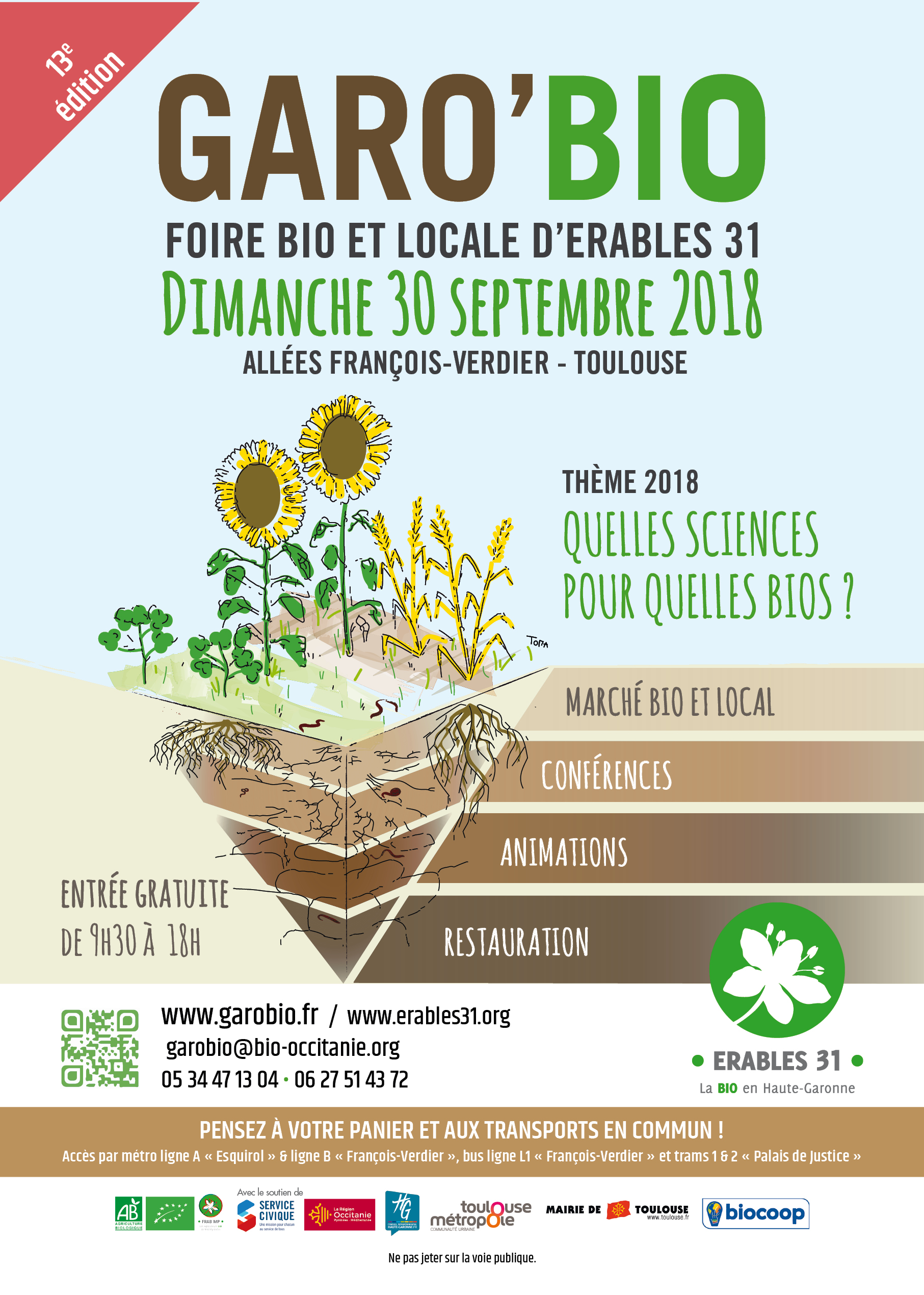 Pour sa 13ème édition, la Foire BiÔ Garonne fait peau neuve et change de nom et de date, mais garde toujours le même état d’esprit ! Cette année, la Foire Garo’bio a lieu le dimanche 30 septembre 2018 aux Allées François-Verdier de Toulouse.