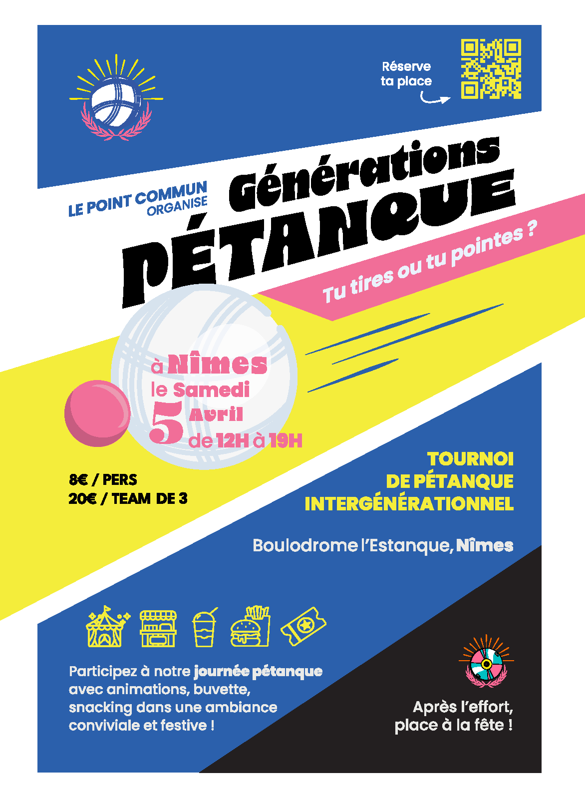 Le Point Commun vous donne rendez-vous pour une journée placée sous le signe du partage et de la bonne humeur ! Amateurs ou curieux, venez profiter d’un événement où compétition et convivialité se rencontrent. Entre parties de pétanque, rires et complicité, l’ambiance promet d’être au rendez-vous.