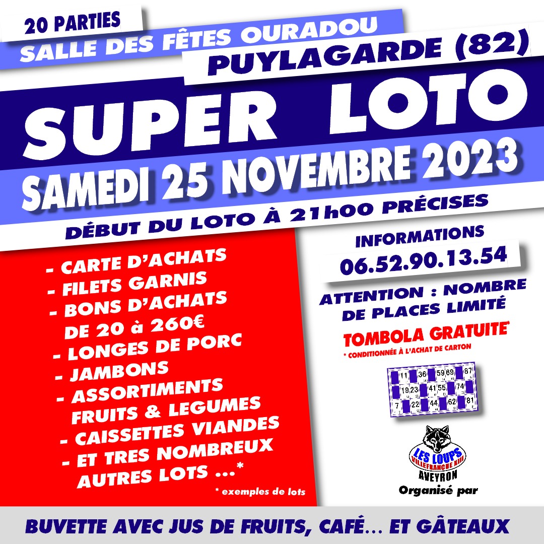 Villefranche XIII-Aveyron organise un grand loto avec comme lots :