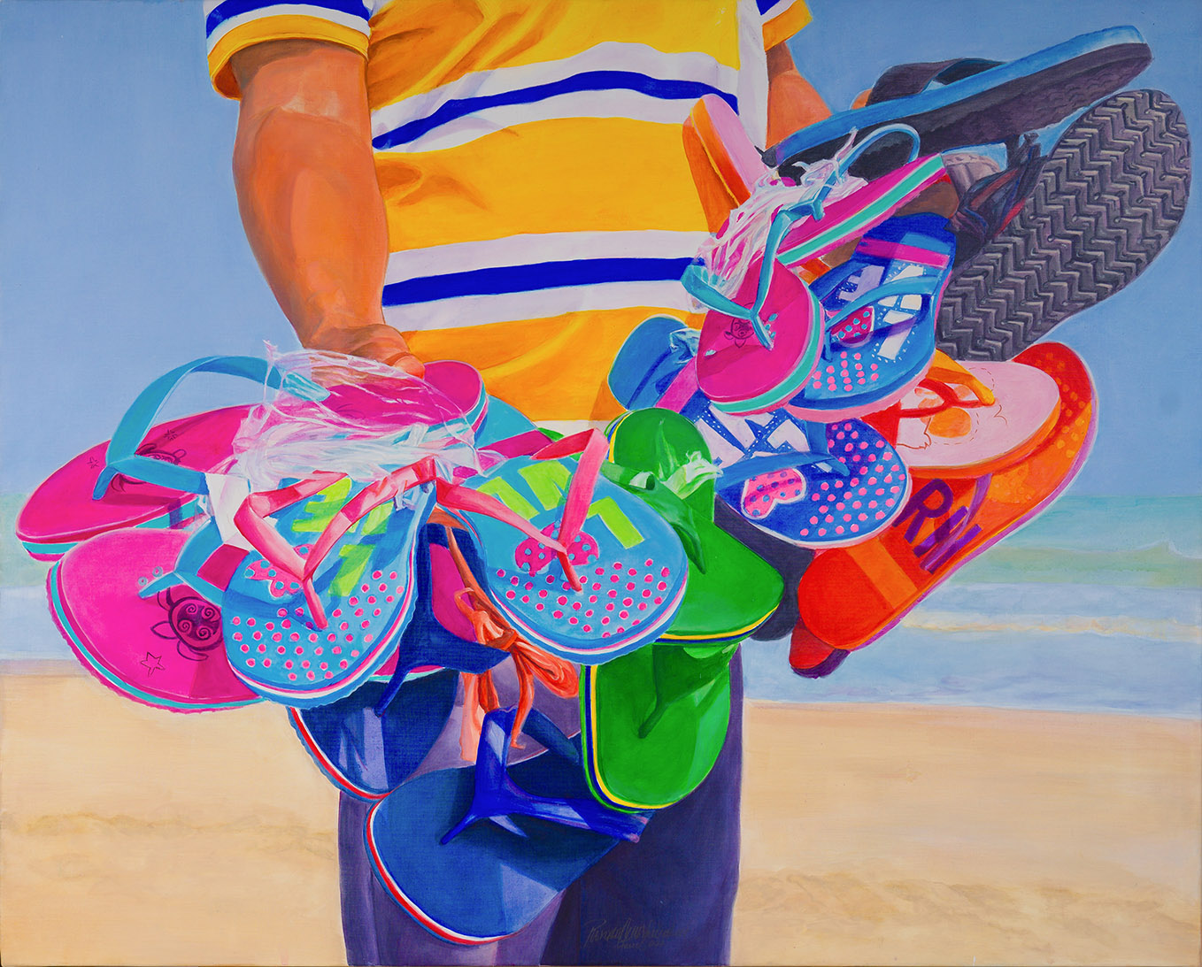Née à Barranquilla en Colombie en 1957, diplômé de l’Ecole des Beaux Arts de ma ville natale et depuis une quarantaine d’années je participe à de nombreuses expositions : Suisse, Etats-Unis, Chili, Espagne, Colombie et en France etc…je suis installée dans l’Hérault depuis une quinzaine d’années, mais retourne régulièrement dans mon pays natal, pour y puiser mes sources d’inspiration. Je suis fascinée par la magie des couleurs, la mise en lumière des vendeurs et vendeuses ambulants qui proposent des articles de plage. Au travers mes tableaux, je livre une vision joyeuse et colorée mais empreinte de réalité sociale.