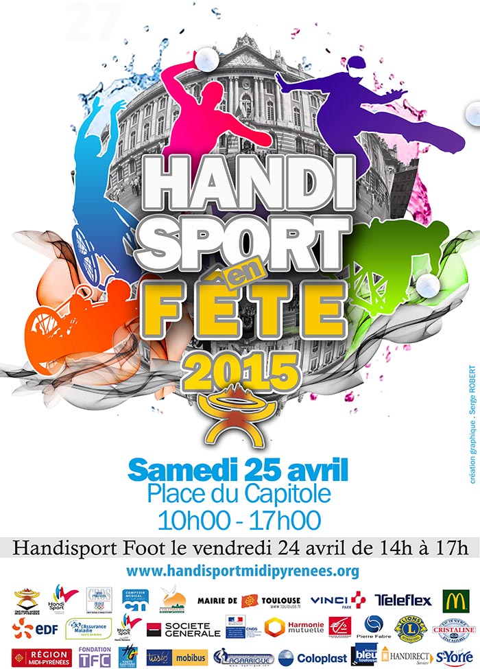 Une journée à la fois sportive & festive, du mouvement Régional Handisport, accompagné de ses principaux partenaires : la Fédération Française Handisport, le Conseil Régional Midi-Pyrénées, le Conseil Général de la Haute-Garonne, la Mairie de Toulouse, le Comité Régional Olympique et Sportif, la Direction Régionale de la Jeunesse, des Sports et de la Cohésion Sociale, Electricité de France, la Caisse Primaire d’Assurance Maladie de la Haute-Garonne, la Société Générale et Harmonie Mutuelle. Le Comité Régional va à la rencontre de « SON » public et du grand public.