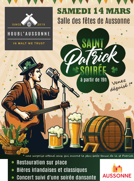 Fort du succès de notre première soirée St Patrick en 2025, Houbl’Aussonne remet ça et c’est samedi 14 Mars 2026 à partir de 19h que l’équipe vous convie à la Salle des fêtes de Aussonne pour célébrer à nouveau la St Patrick.