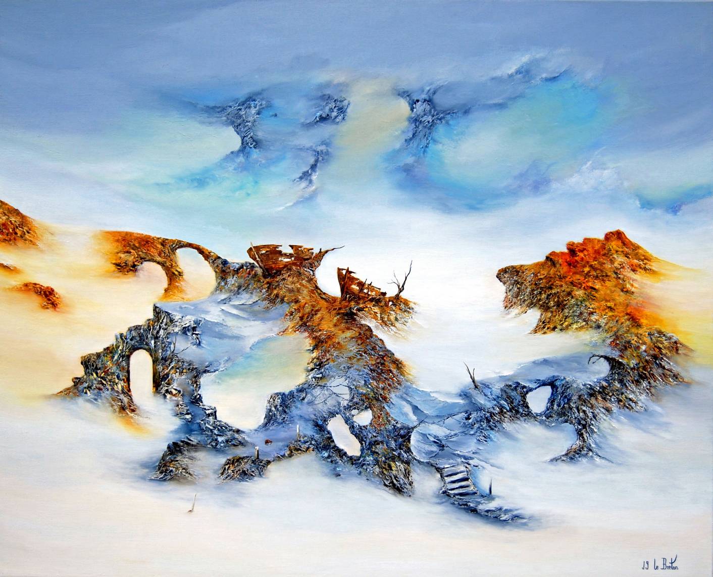 Une peinture poétique, onirique où règne calme et douceur, où l’intime est le vrai paysage. Très technique, l’œuvre de Jean-Yves LE BRETON s’ancre autant dans la réalité par sa figuration que dans une dimension fantasmatique presque surréaliste.