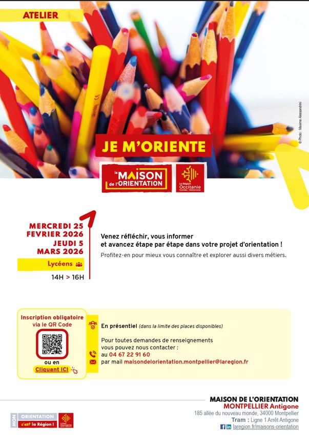 Infos pratiques : Renseignements et inscription auprès de la Maison de l’Orientation de Montpellier