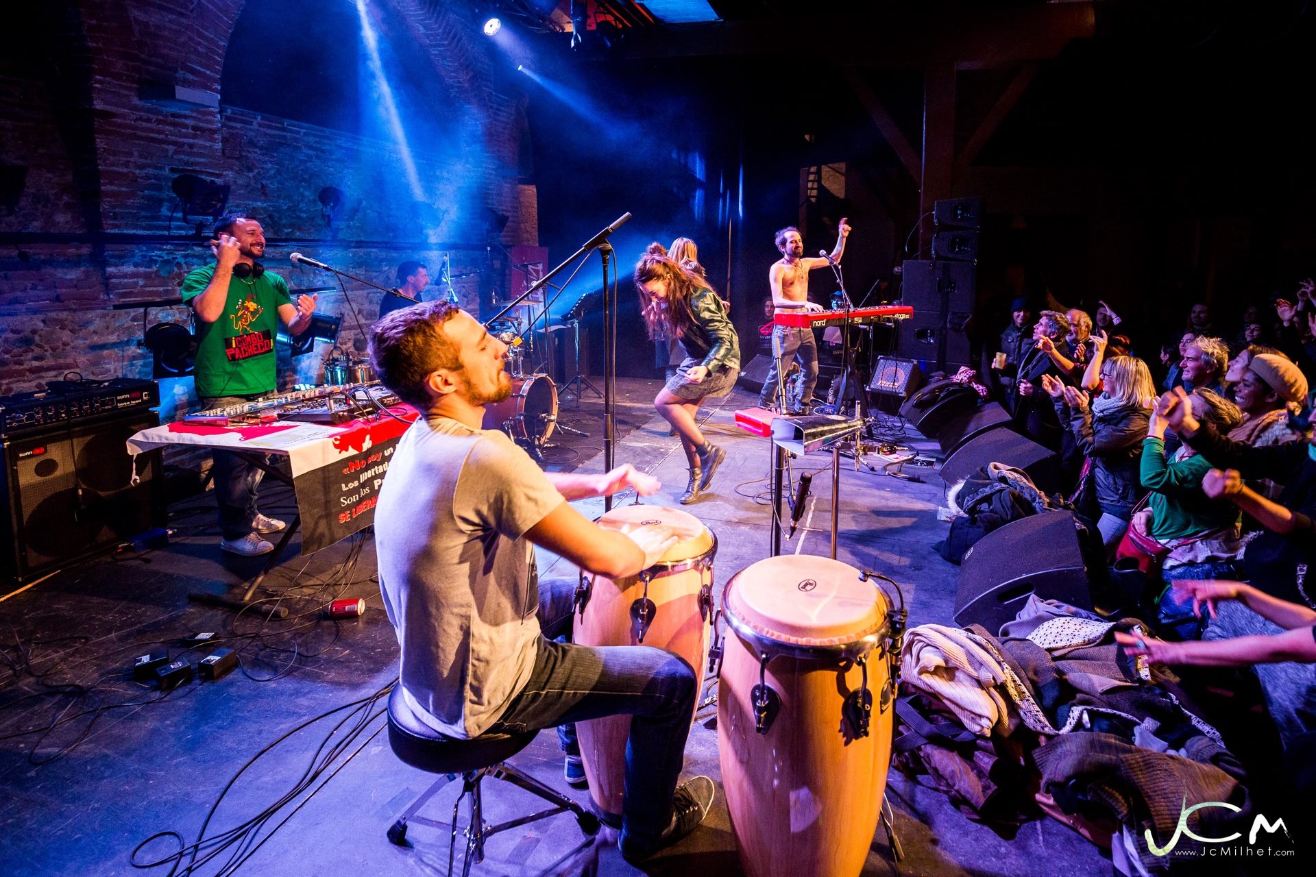 Reco Reco : Une combinaison infaillible et redoutable en live, pour faire bouger les corps, comme s’il s’agissait d’un rituel vaudou urbain dans une free-party pré-colombienne… Les cinq membres de Reco Reco nourrissent leur son de kuduro, de merengue, de 3ball mexicain, de cumbia ou encore de forro et balao du Brésil.