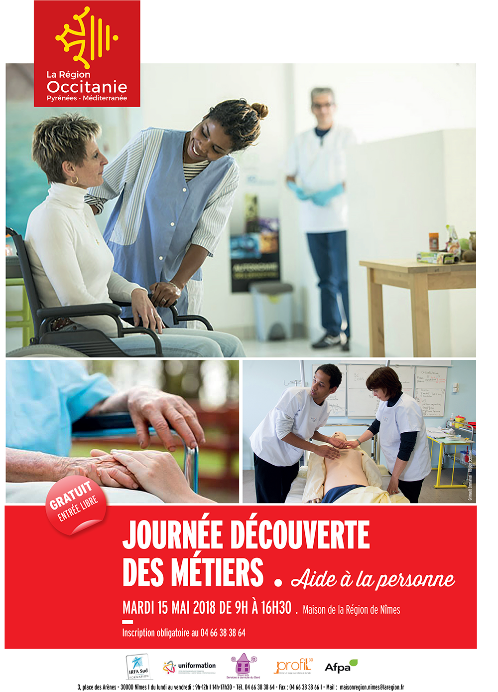 Le mardi 15 mai 2018 de 9h à 16h30, la Région Occitanie vous propose de découvrir les métiers de l’aide à la personne.