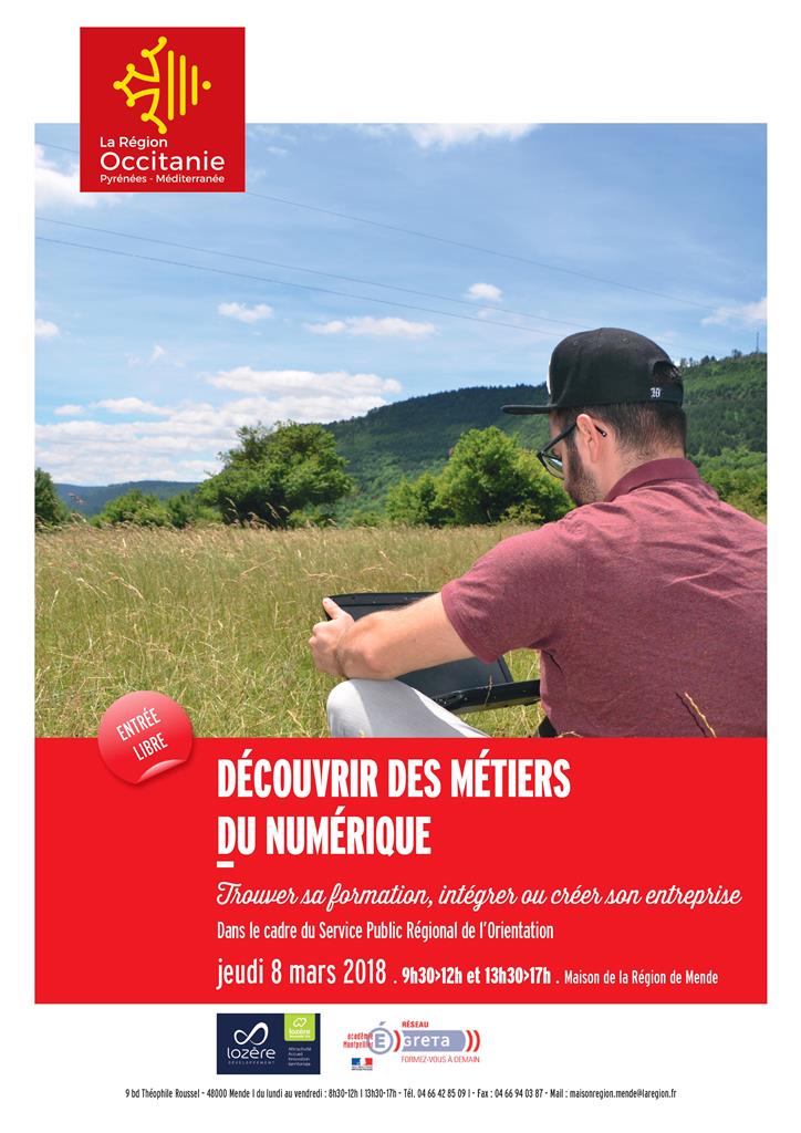 Dans le cadre du Service Public Régional de l’Orientation, la Maison de ma Région organise le jeudi 8 mars 2018 une journée Découverte des métiers du numérique.