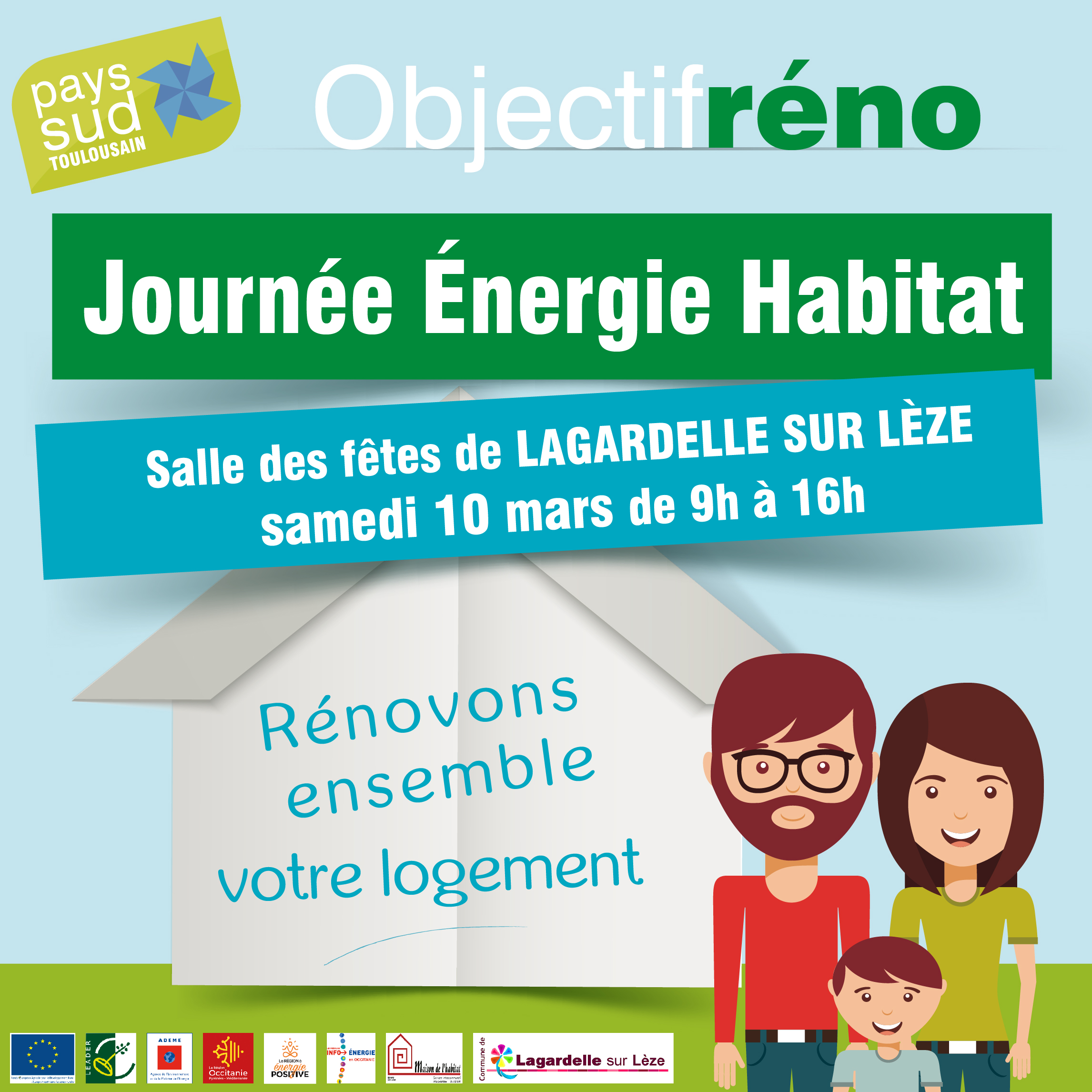Infos pratiques : La Journée Energie Habitat se déroule de 9h à 16h à la salle des fêtes de Lagardelle-sur-Lèze le samedi 10 mars 2018.