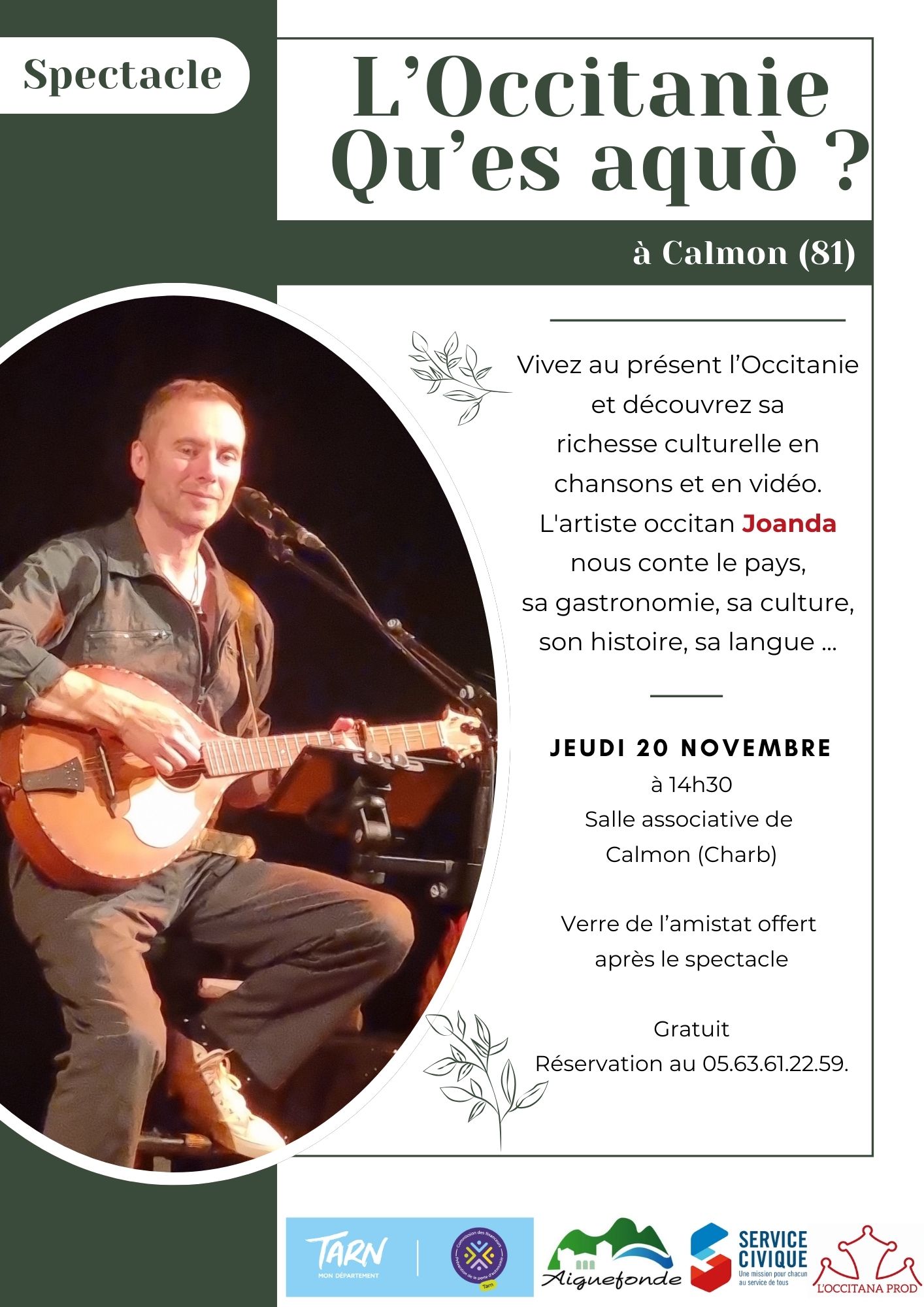 L’artiste occitan Joanda nous fait vivre l’Occitanie au présent et découvrir sa richesse culturelle et patrimoniale en chanson et en vidéo. Il conte le pays, sa gastronomie, sa culture, son histoire, sa langue, ses sports, ses jeux, les secrets de son patrimoine, ses traditions millénaires, ses mots secrets, ses fêtes, ses animaux totems…