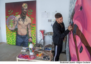 Pour les artistes, faire venir du monde dans leur atelier, c’est aussi l’opportunité de lever le rideau sur leur travail et de faire découvrir plus largement leurs œuvres. Il y a deux ans, Samuel Spone et Gaétan Vaguelsy ont créé, avec Sam Krack et des amis, l’atelier Hisoka à Sète (Hérault). Ces trois artistes profitent de la Journée d’Ateliers d’Artistes pour inaugurer officiellement leur atelier. Pour Samuel Spone, cet événement est intéressant car il « peut ramener un public assez large ». « Depuis le début, on a tous envie de pouvoir partager notre atelier. C’est bien de présenter nos boulots et notre atelier à différentes personnes et de se présenter aux gens. » Son acolyte, Gaétan Vaguelsy souligne qu’il est important pour eux de « faire exister l’atelier et de se marquer sur ce territoire. C’est bien de montrer qu’on est là, de rencontrer les gens. Ça permet aussi de sortir un peu de l’ambiance solitaire du travail d’atelier, c’est cool d’amener du vivant dans ce lieu. »