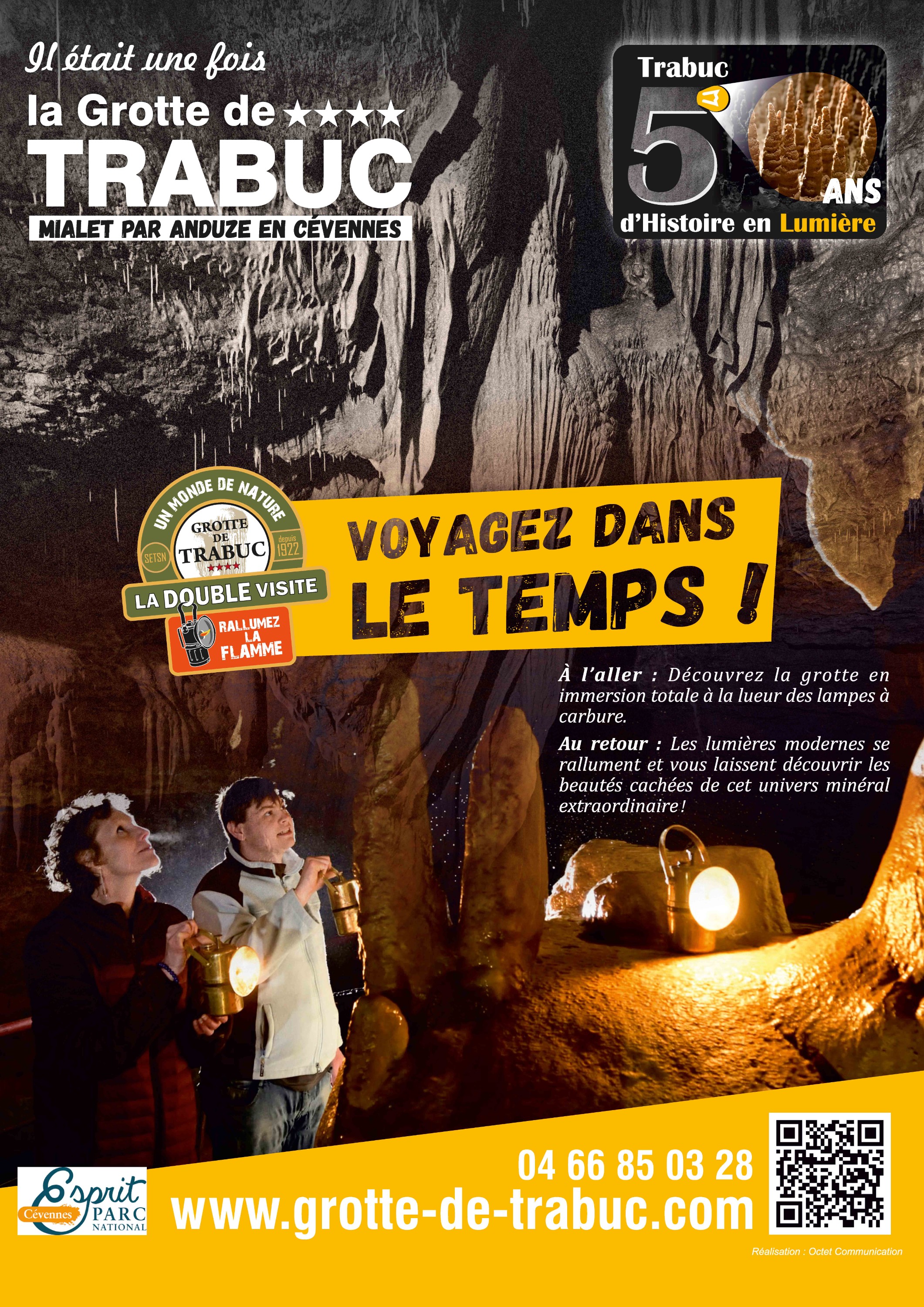 Pour la première fois la Grotte de Trabuc coupe les lumières et vous propose un voyage dans le temps. Aventurez vous dans les galeries de la partie aménagée, accompagnés d’un guide.