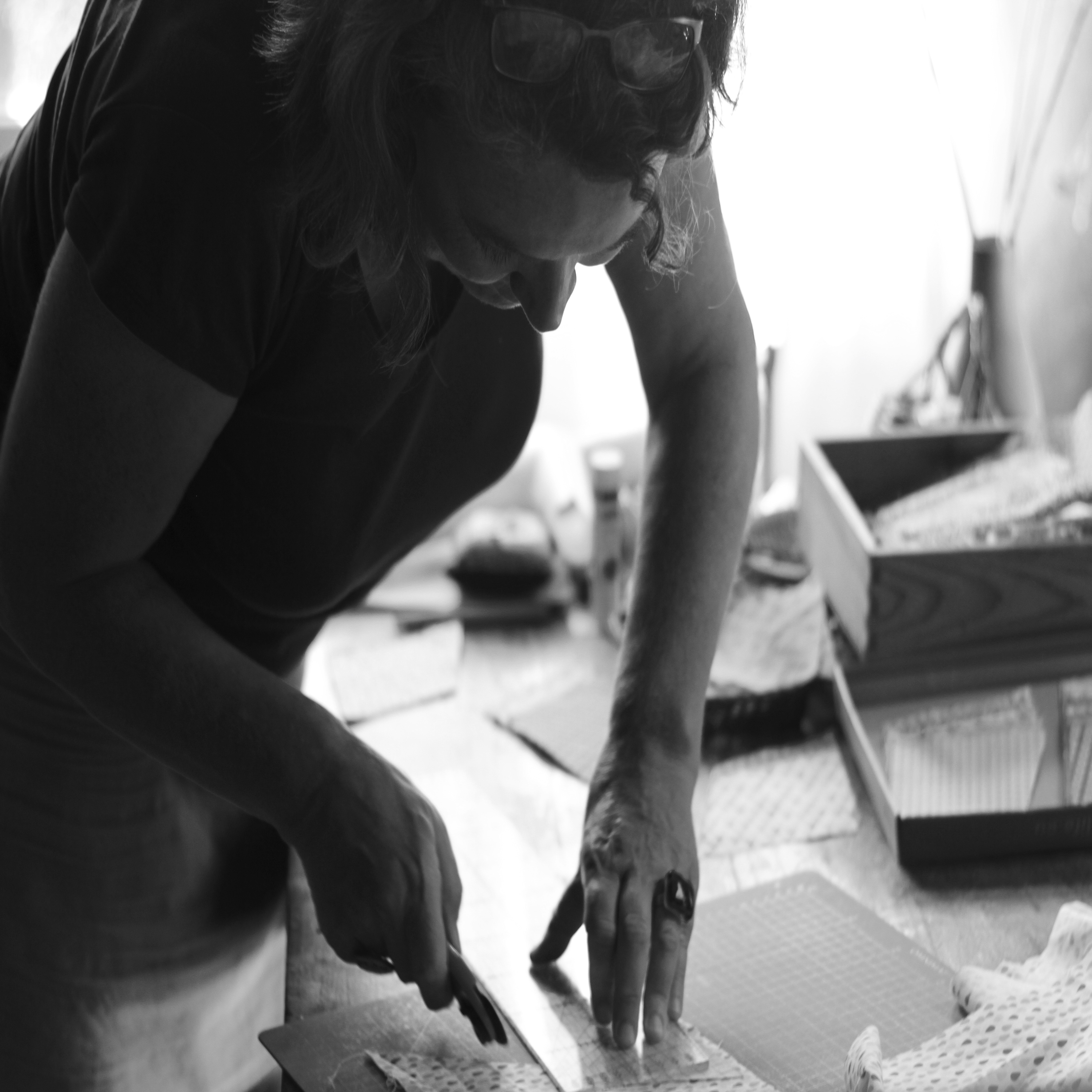 Voir, toucher, sentir, … les sens en éveil, elle compose, coupe, assemble, recompose, …