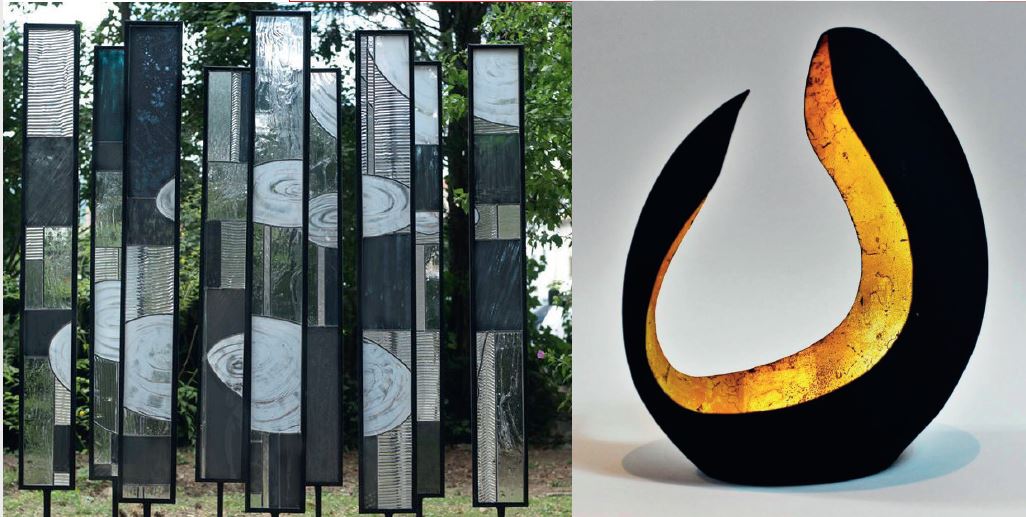 SKLAERENN IMBEAUD, Maître artisan verrier de Castres partage son activité depuis 25 ans entre la restauration de vitraux sur monuments historiques et la création d’œuvres en verre, mariant différentes techniques et matériaux. Concevoir le vitrail sous forme de sculptures ou d’installations lui permet d’aborder le volume. Ses œuvres créent alors des interactions et des résonances entre les éléments environnants et la matière travaillée ; la nature, les lignes, la lumière, les jeux de transparence, les textures des verres sont des lieux de prédilection. Progressivement des rythmes graphiques s’installent dans l’espace : verre, papier, métal, ou porcelaines se sertissent et fusionnent pour des créations uniques et originales.
