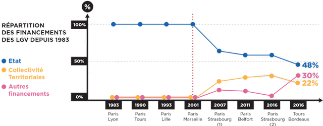 Depuis 1980, 77% des montants investis pour le réseau ferré à grande vitesse ont été pris en charge par l’État et la SNCF.
