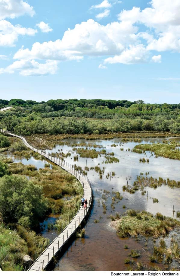 Les vastes marais infestés de moustiques qu’on y trouvait à l’origine ont aujourd’hui laissé place à des paysages sauvages à perte de vue, ponctués d’étangs et de lagunes, peuplés de chevaux, taureaux, flamants roses, hérons et autres oiseaux migrateurs. La Maison du Grand Site de la Camargue gardoise, à Aigues-Mortes, est un bon point de départ pour s’initier à l’histoire et aux beautés de cette région avant de partir à pied, à vélo, à cheval ou même en canoë voire en stand-up paddle à la rencontre de cette petite Camargue qui a tout d’une grande.