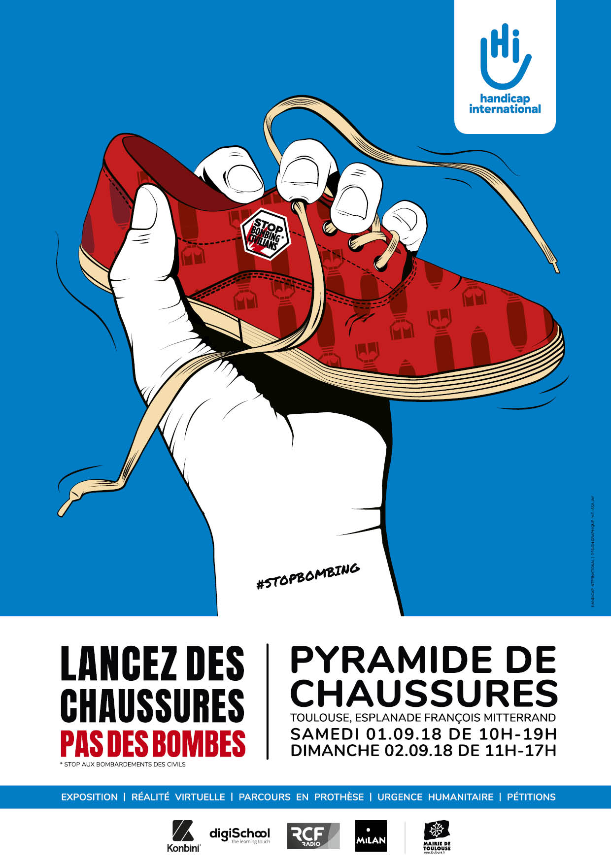 Infos pratiques : Pour devenir bénévole et embarquer avec Handicap International dans l’aventure de la 24è Pyramide de chaussures de Toulouse, contactez :