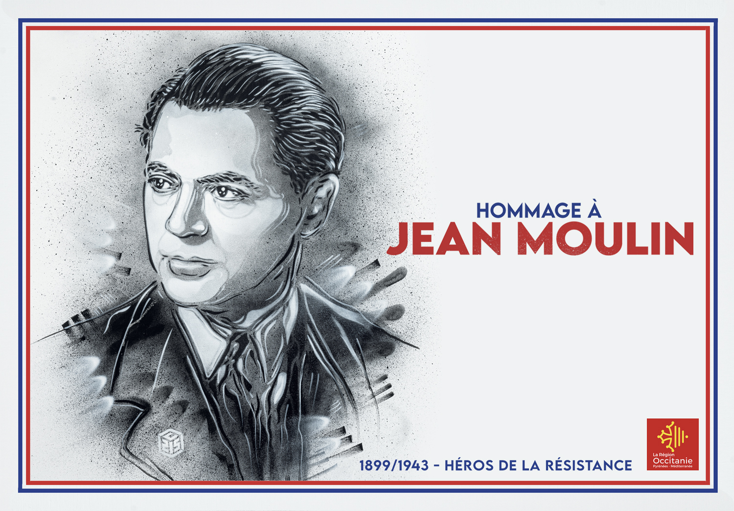 Des plaques ont été dévoilées au lycée Jean Moulin de Béziers - ville qui l’a vu naître - ainsi qu’au lycée Jean Moulin de Pézenas. La Région se joint également à cet hommage en mettant en avant un portrait du héros de la Résistance réalisé par l’artiste C215 [3] sur les hôtels de région de Montpellier et de Toulouse ; une vitrophanie [4] est également affichée sur la vitre de la Maison de Région de Béziers. La présidente de Région a par ailleurs participé le 27 mai à une cérémonie de commémoration et déposé une gerbe devant la stèle des évadés au col de Fontfrède, dans les Pyrénées-Orientales. Enfin, des dessins de Jean Moulin signés de son nom d’artiste seront exposés du 7 juillet au 31 août sur le parvis de l’hôtel de Région de Montpellier.