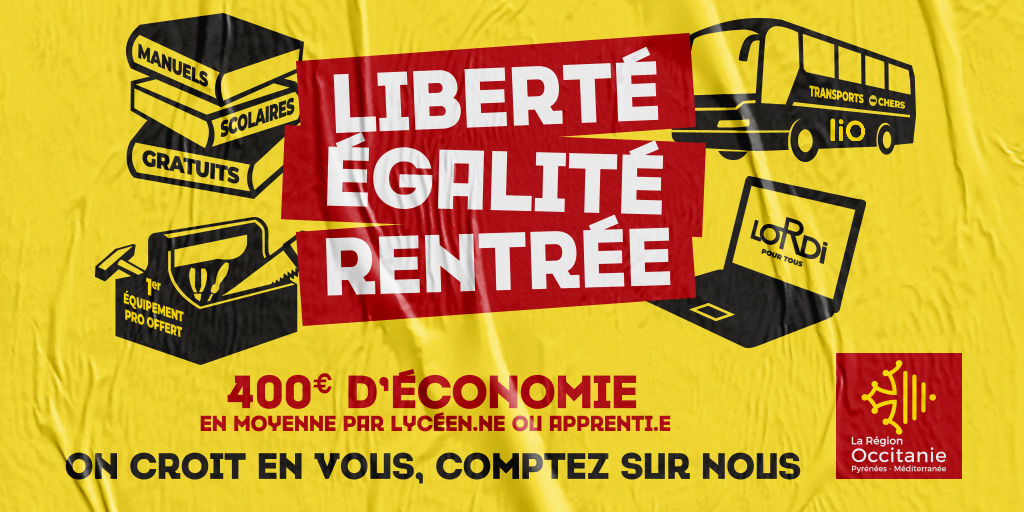 Plus de 500 000 jeunes d’Occitanie font leur rentrée aujourd’hui ! La Région est à leurs côtés avec l’ensemble de la communauté éducative pour les aider à gravir l’escalier de la réussite.