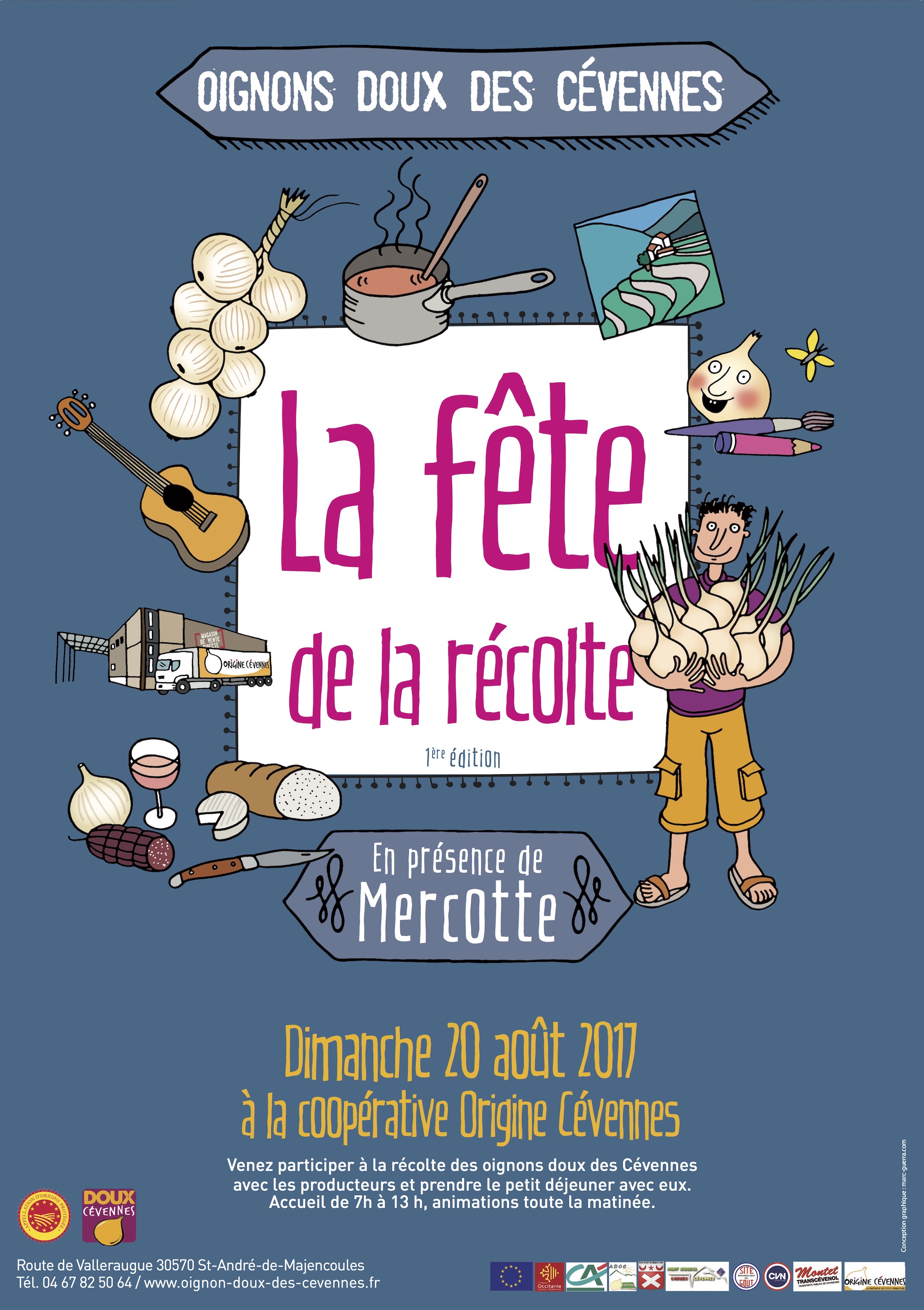 En présence de Mercotte (blogueuse et jury de l’émission "Le meilleur Pâtissier" sur M6 avec Cyril Lignac) marraine de cette première édition, La fête de la récolte se déroule sur le site de la coopérative Origine Cévennes (point de départ de toutes les animations) et débute à 7h pour les plus courageux - l’accueil des participants étant prévu jusqu’à 13h - avec la possibilité pour chacun d’adapter son programme à la carte, en participant aux ateliers de son choix. Des circuits et des moyens de transports adaptés sont prévus pour accéder aux parcelles de culture en terrasse situées dans le village.
