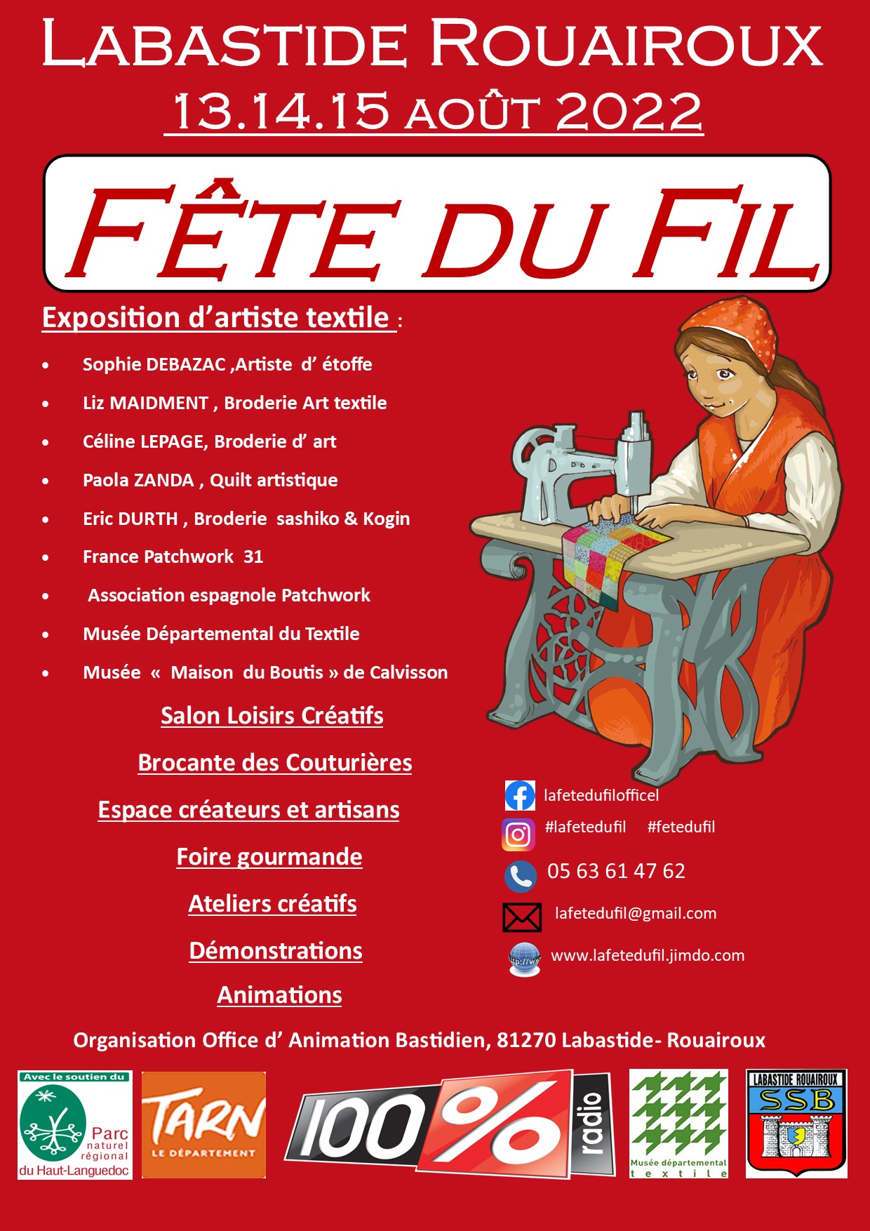 Evènement d’ art textile, exposition, salon des loisirs créatifs , brocante des couturières, espace créateurs et artisans, foire gourmande, ateliers créatifs démonstration.