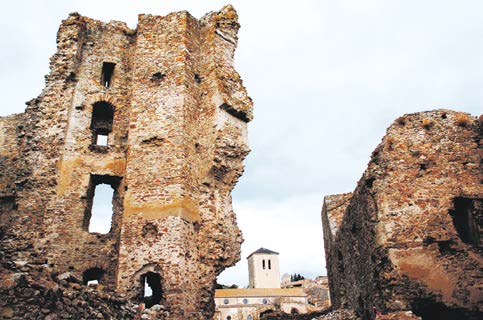 L’imposante construction de schiste et de granit, surgit en surplomb de l’à-pic vertigineux sur lequel il a été édifié. Ses origines remontent au Xe siècle. Détruit au cours de la croisade contre les Albigeois, il a été reconstruit en plusieurs étapes à partir de la fin du XIIIe siècle. Bâti en terrasses, il offre une vue splendide sur les Pyrénées qui se trouvent pourtant à une centaine de kilomètres. En contrebas du château, les ruines de l’ancien village castral et de ses ruelles se distinguent dans un ravin. À l’intérieur, une salle est consacrée au Trésor de Saissac, découvert lors de fouilles de 1979, composé de plus de deux milles pièces d’or frappées à l’effigie de Saint-Louis. Le château appartient au réseau des sites du Pays Cathare.
