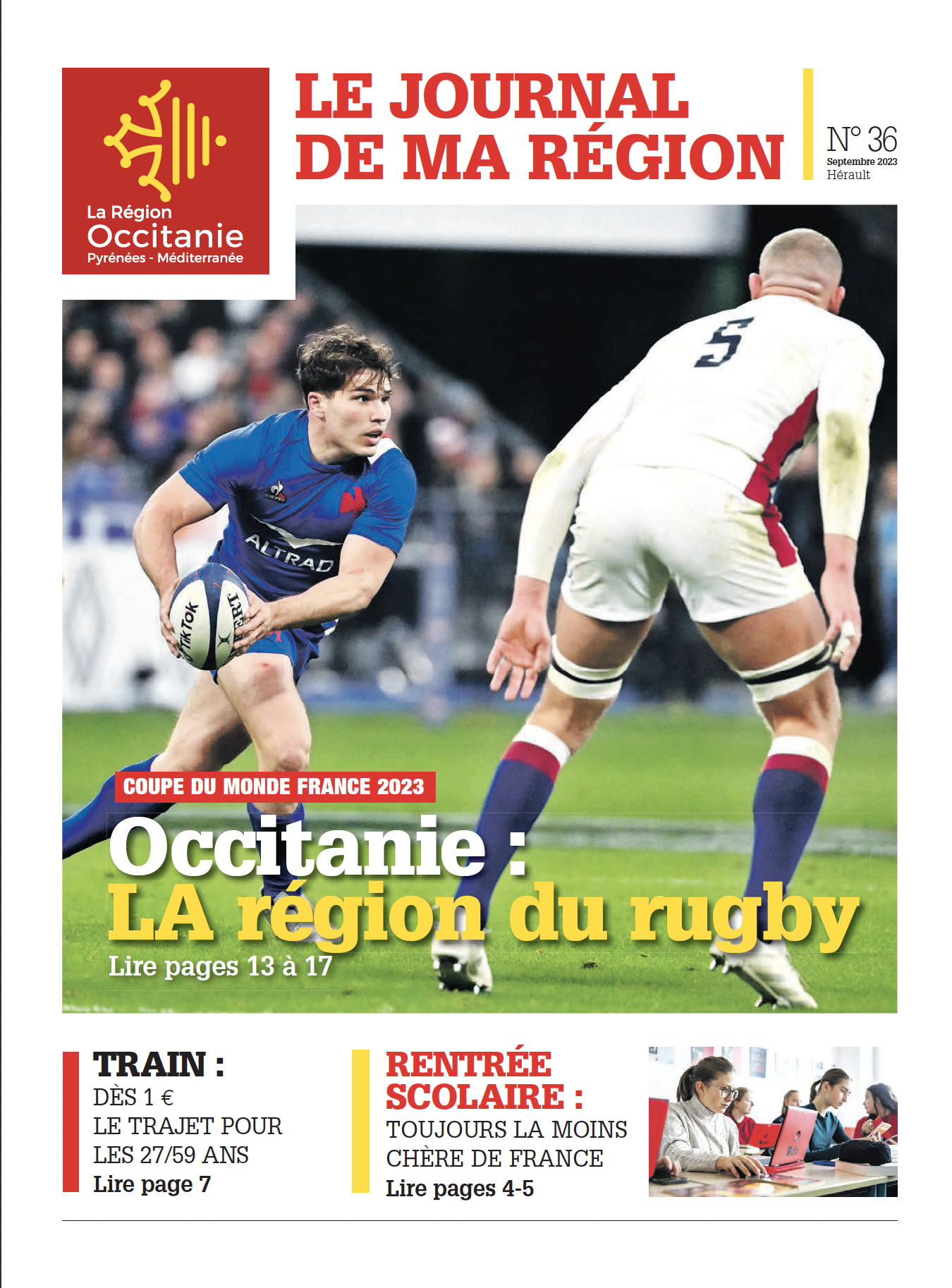 Et bien sûr, puisque l’actualité de cette rentrée, c’est la coupe du monde de rugby qui se déroule en France, nous vous proposons un dossier complet sur cet événement (pages 13 à 17) avec en prime, en pages centrales, un calendrier détachable pour ne rien manquer de cette fête qui va rythmer nos vies dans les prochaines semaines, et tout particulièrement en Occitanie, LA région du rugby..