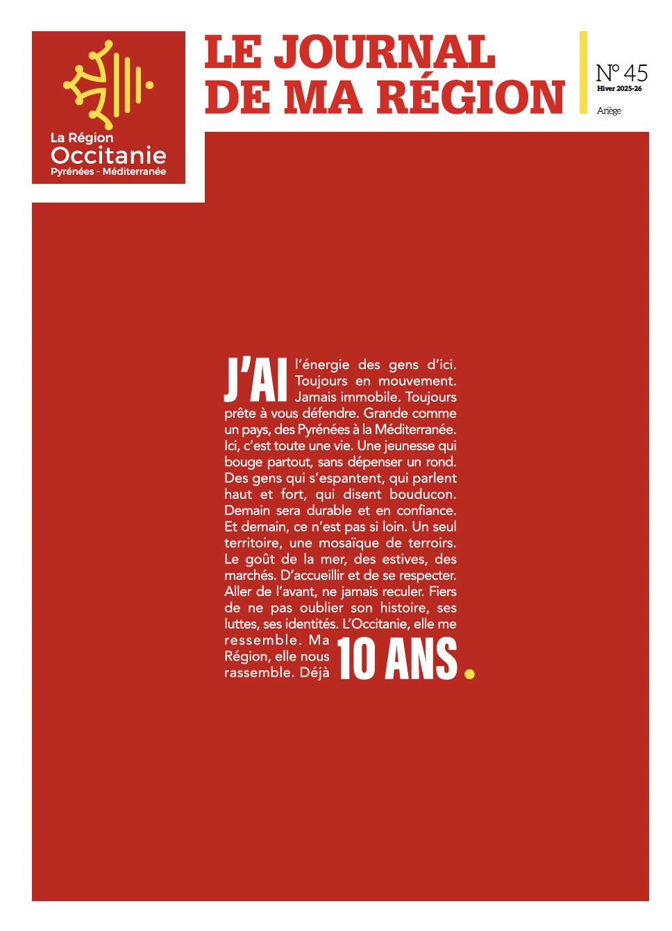 Il y a 10 ans naissait l’Occitanie. A l’occasion de cet anniversaire, c’est un numéro spécial du Journal de la Région que nous vous proposons. Éducation, santé, transports, économie, environnement, soutien au pouvoir d’achat… Difficile de résumer en quelques pages dix ans d’actions de la Région Occitanie, mais vous trouverez dans ce numéro quelques-unes de ses principales réalisations passées et à venir, à l’échelon régional mais également dans votre département.