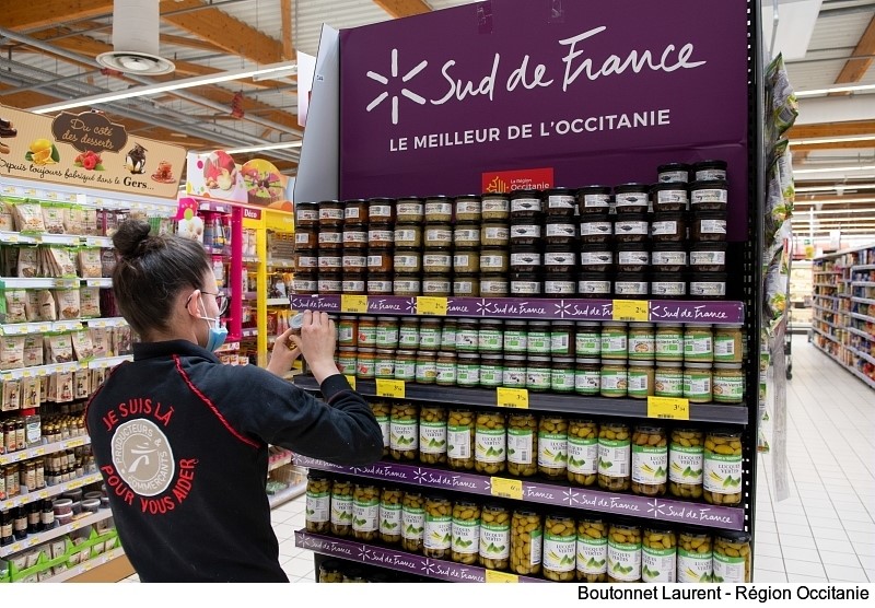 Afin de faciliter le repérage par les consommateurs des produits labellisés Sud de France, ils sont déclinés en trois familles : « L’Excellence de l’Occitanie » pour les produits sous signes de qualité et d’origine, « Le Bio d’Occitanie » pour les produits certifiés Agriculture Biologique, et « Les Produits d’Occitanie » qui répondent aux critères de savoir-faire régionaux. Pour renforcer la place des produits locaux dans les rayons et améliorer les revenus des producteurs, la Région et six enseignes de la grande distribution ont également signé un partenariat en 2021. Près de 300 entreprises adhérentes sont ainsi mises en avant dans les rayons de la grande distribution, dans plus de 1 000 points de vente en France.