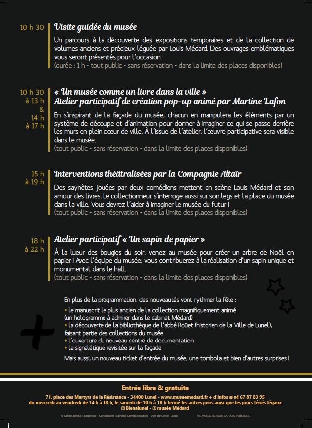 la découverte de la bibliothèque de l’abbé Roüet (historien de la Ville de Lunel), faisant partie des collections du musée ;