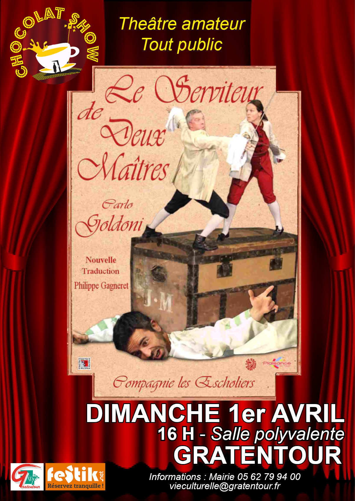 Dernier " Chocolat Show " de la saison 2017/2018 à Gratentour le dimanche 1er avril avec la compagnie amateur de Plaisance du Touch « Les Escholiers ».