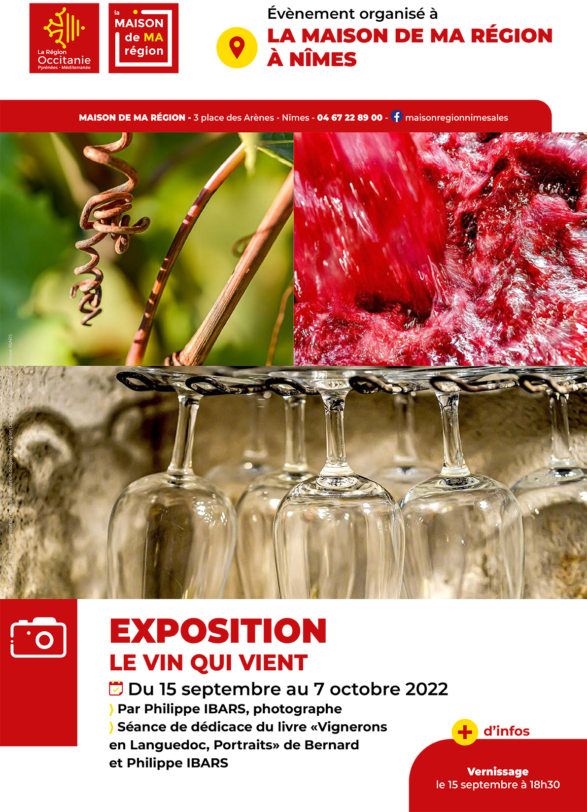 Exposition de photographies par Philippe IBARS et séance de dédicace du livre « Vignerons en Languedoc, Portraits » de Bernard et Philippe IBARS aux éditions Alcide., le jour du vernissage, 15 septembre à 18h30