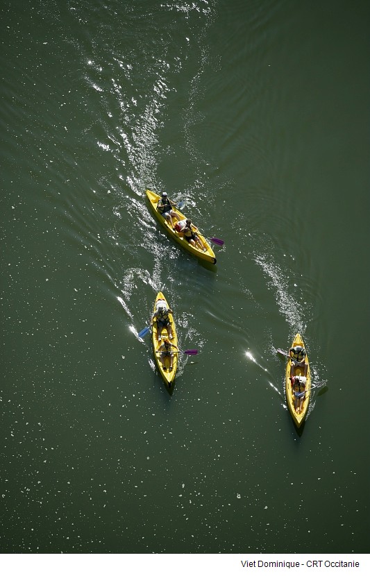 Ce paysage vertical, entaillant le causse, s’arpente de mille et une manières : à pied, en canoë-kayak, à vélo, ou même en voiture sur la route de la Corniche. Havre de fraîcheur quand le soleil tape en plaine et sur le causse, les gorges s’avèrent propices aux baignades, le long de belles plages naturelles. Il faut faire une halte à Saint-Antonin-Nobleval, village entouré par trois falaises (Roc d’Anglars, Roc Deymié et Pech Dax) et centre névralgique des gorges de l’Aveyron. Au-delà les parois s’abaissent, la rivière s’élargit et retrouve un cours vallonné et tranquille.