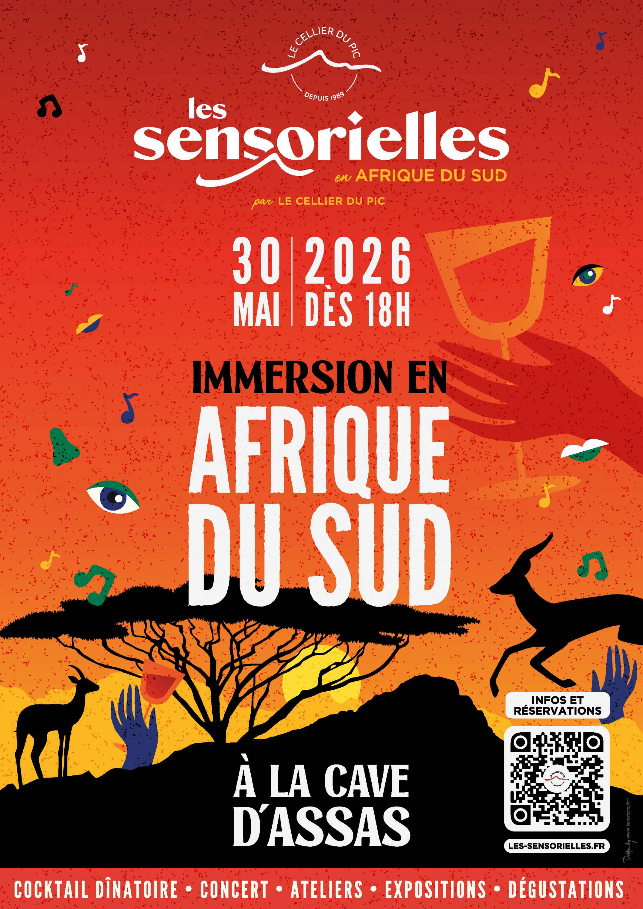 Cette soirée vous transportera au coeur de la culture sud-africaine à travers une programmation pensée pour éveiller chaque sens. Des ateliers olfactifs évoqueront les parfums typiques de la pointe de l’Afrique, un concert aux sonorités entraînantes résonnera dans la cave, et un cocktail dînatoire sous les étoiles vous offrira l’occasion de déguster des spécialités culinaires locales accompagnées d’une sélection de vins prestigieux. Les performances artistiques, les animations visuelles et sonores inspirées des paysages et de l’art sud-africain seront au rendez-vous pour une immersion complète.