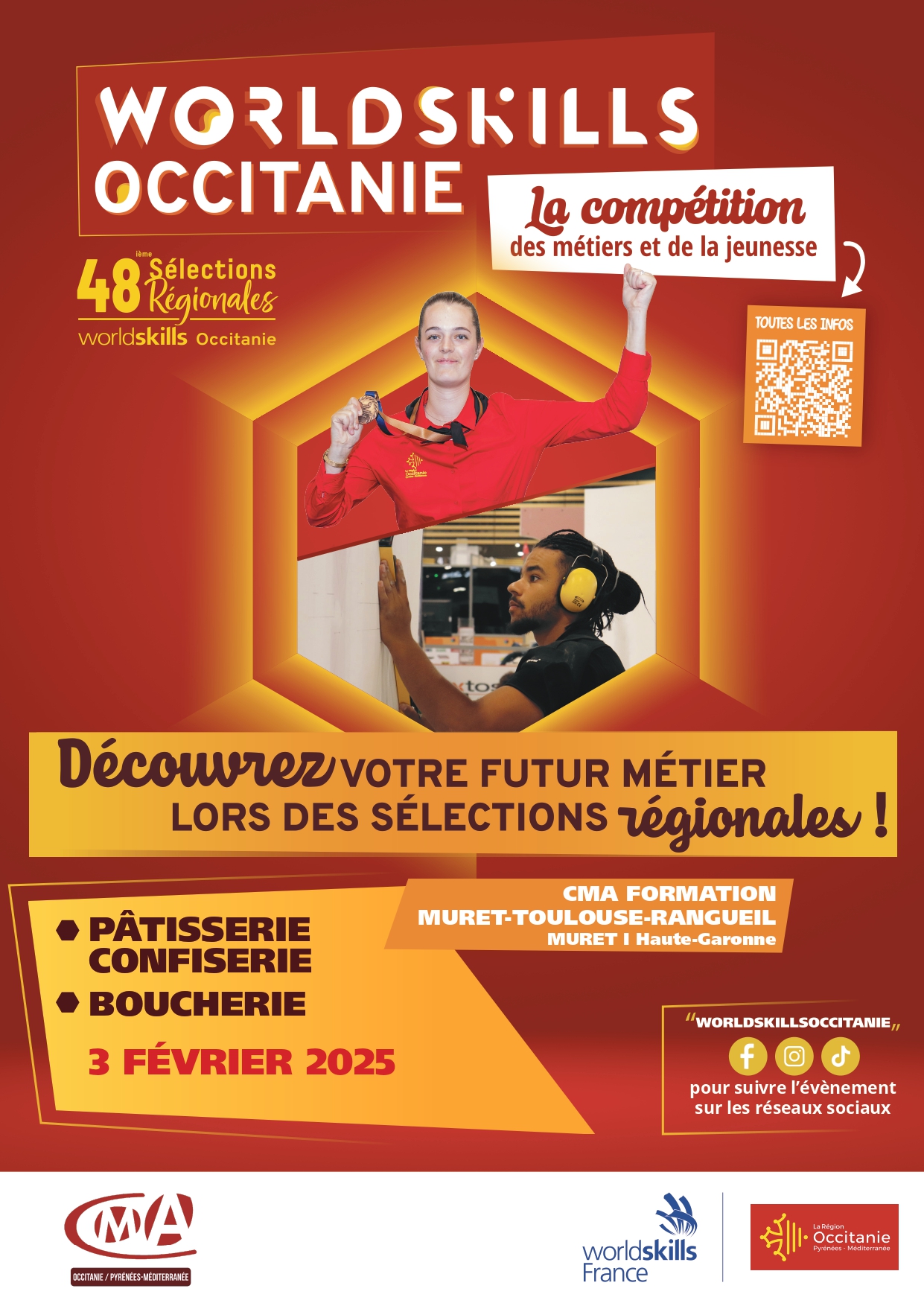 Les Sélections Régionales Worldskills Occitanie pour le métier "BOUCHERIE" auront lieu le 03/02/2025, au CMA FORMATION MURET-TOULOUSE-RANGUEIL. Elles seront organisées en parallèle de la Journée Portes-Ouvertes de l’établissement, au cours de laquelle il vous sera également possible de visiter les plateaux techniques.