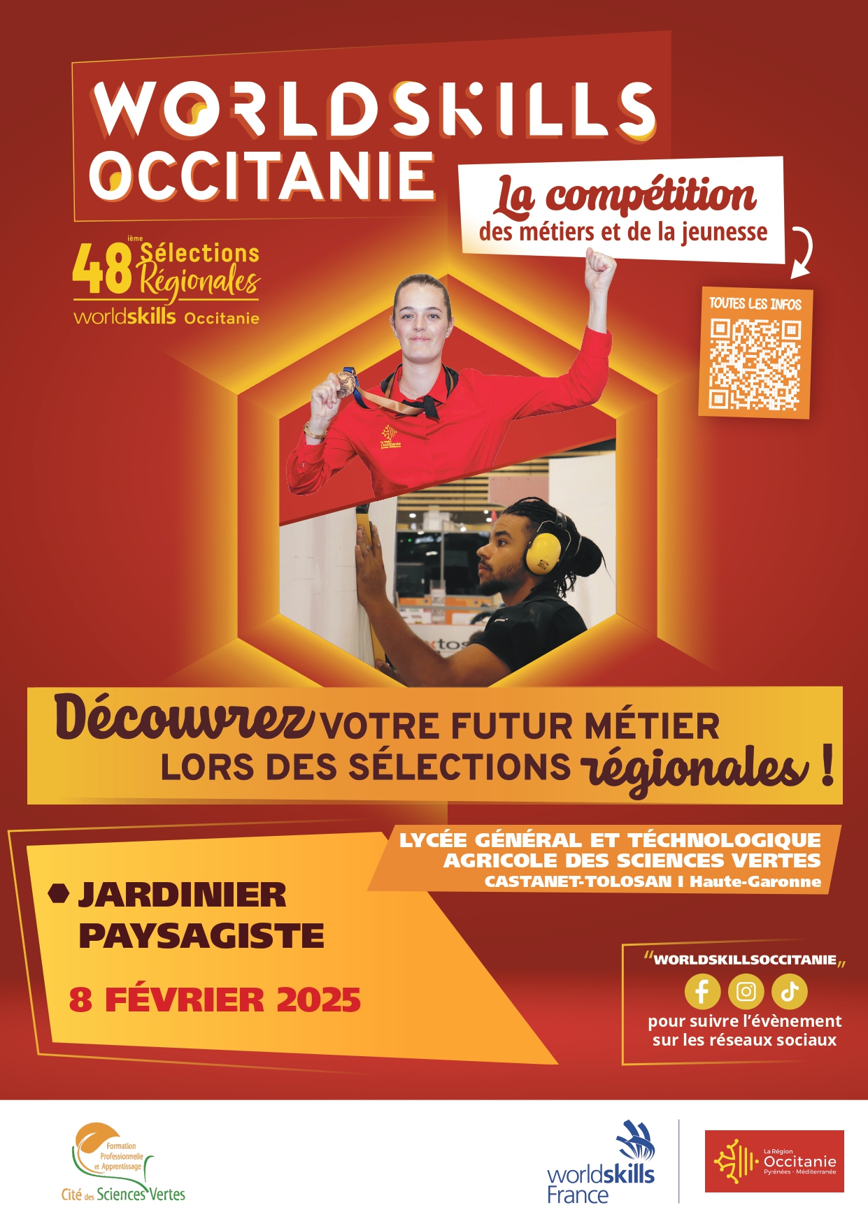 Les Sélections Régionales Worldskills Occitanie pour le métier "Jardinier Paysagiste" auront lieu le 8 février 2025, à l’EPLEFPA TOULOUSE AUZEVILLE de CASTANET-TOLOSAN. Elles seront organisées en parallèle de la Journée Information Métiers, de la Journée Portes-Ouvertes de l’établissement, au cours de laquelle il vous sera également possible de visiter les plateaux techniques.