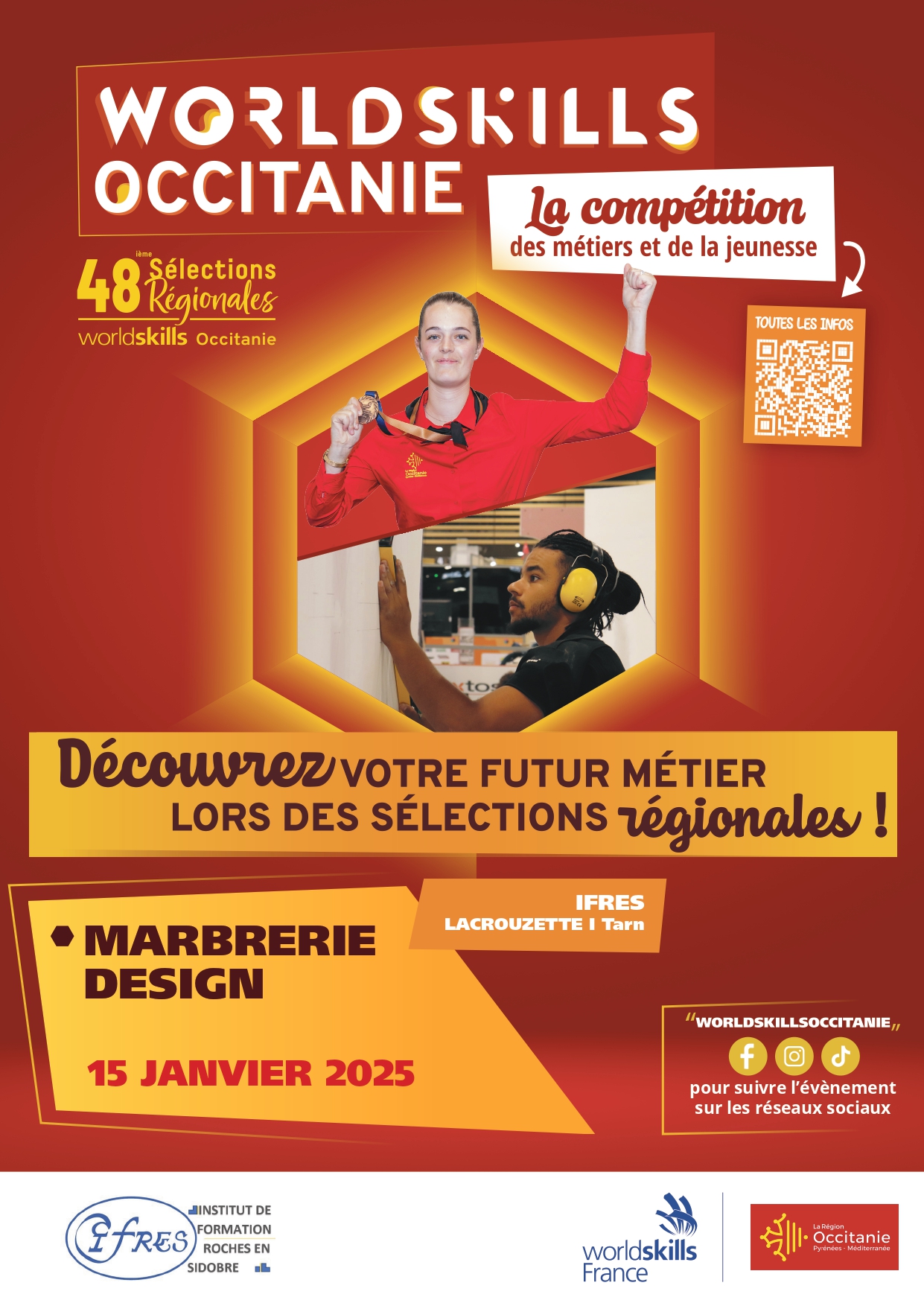 Les Sélections Régionales Worldskills Occitanie pour le métier "Marbrerie Design" auront lieu le 15 janvier 2025, à l’IFRES de Lacrouzette. Elles seront organisées en parallèle d’une Journée Information Métiers, de la Journée Portes-Ouvertes de l’établissement, au cours de laquelle il vous sera également possible de visiter les plateaux techniques.