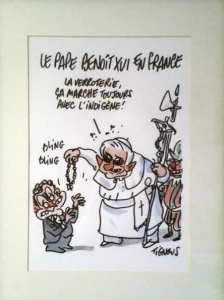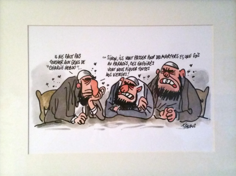 Pourquoi des dessins de Tignous ? Le dessinateur avait beaucoup d’attaches dans la région, notamment familiales et artistiques. Sa mère vit toujours au Grau-du-Roi, dans le Gard. Et Tignous était l’un des piliers du festival de caricatures et de dessins de presse de Castelnaudary.