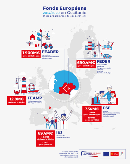 La Région Occitanie / Pyrénées-Méditerranée gère plus de 93 % des 3 milliards d’euros mobilisés par l’Europe pour l’Occitanie de 2014 à 2020. Formation et insertion des jeunes, soutien à l’entrepreneuriat et au développement des PME, à l’innovation, à l’agriculture et à la pêche, à la protection de l’environnement : ce sont les grands objectifs partagés de l’Europe et de la Région, activés via les fonds Feader, Feder, FSE, Feamp et l’Initiative européenne pour la jeunesse (IEJ). Ce mardi 5 juin en présence du vice-président de la Région aux affaires européennes Guillaume Cros, le comité de suivi des fonds européens a mesuré l’avancement des programmes : plus de 1,5 milliard d’euros a été accordé à plus de 52 000 projets, dont 50 570 liés à l’agriculture et la ruralité.