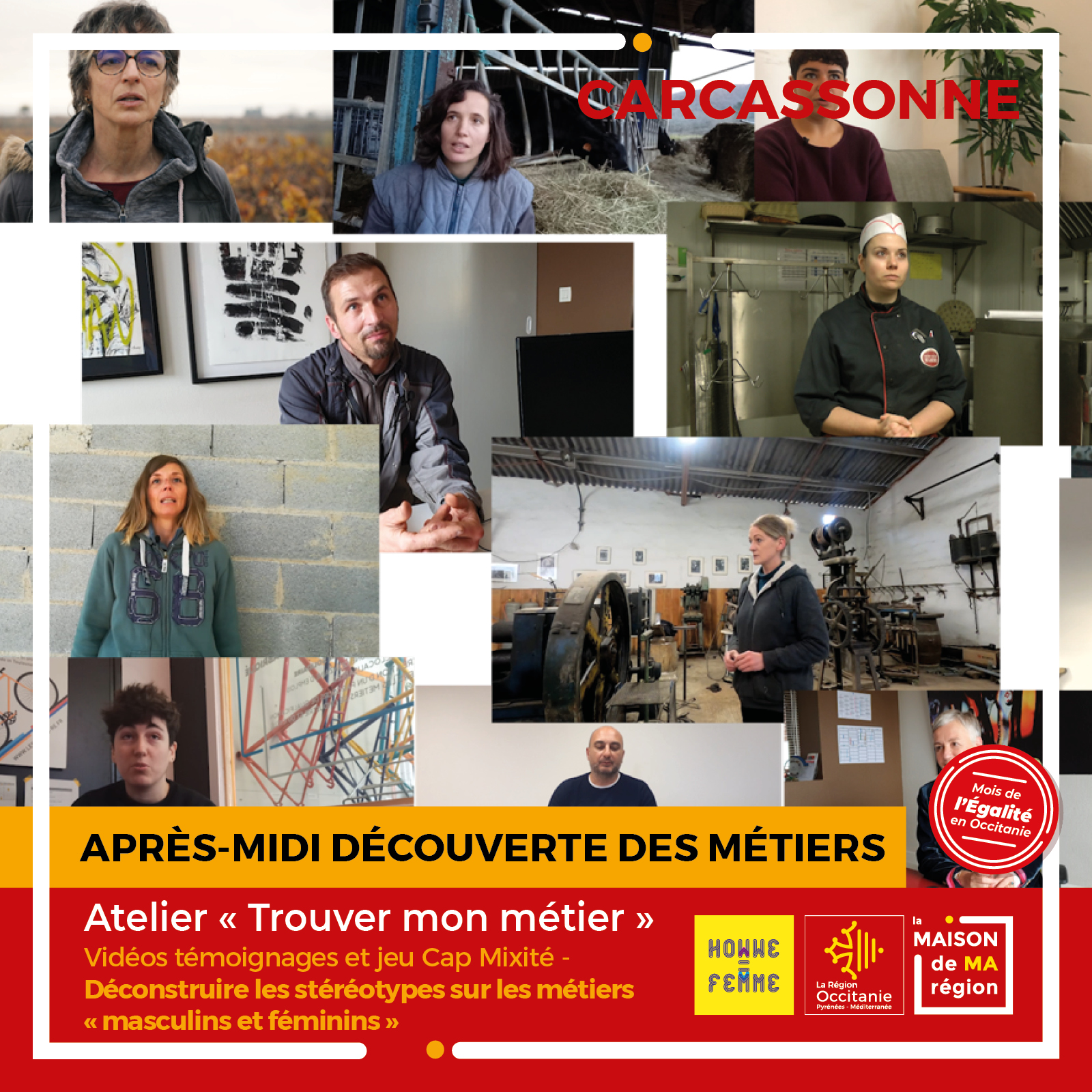 MOIS DE L’EGALITE EN OCCITANIE à Carcassonne : Après-midi découverte des métiers Mixité-Stéréotypes Atelier "Trouver mon métier"