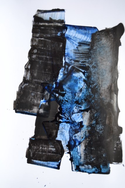 Quant à l’encre c’est l’expression basée sur le geste. c’est un métissage entre abstraction gestuelle et tradition orientale de la composition