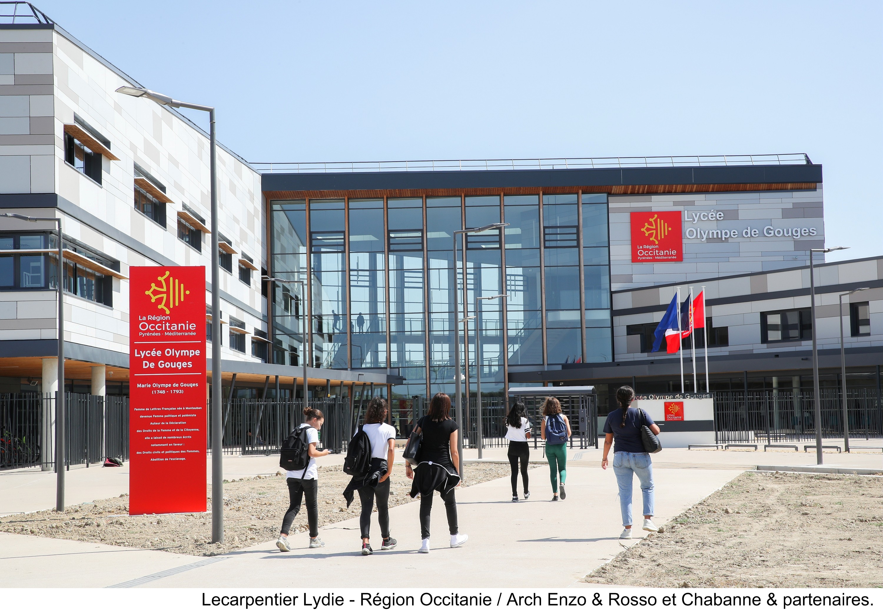 « Nous avons souhaité rendre hommage à Olympe de Gouges, née en 1748 à Montauban, et qui a consacré une grande part de sa vie à défendre les droits des femmes. C’est au nom des valeurs de progrès, de tolérance et de paix qu’elle a portées, et que nous partageons et défendons, que j’ai proposé de dénommer le nouveau lycée de Montech, lycée Olympe-de-Gouges ». Carole Delga