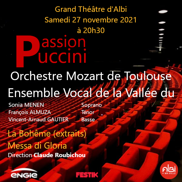 • Les plus beaux airs de « La Bohème » de Giacomo Puccini, interprétés Anaïs Constant, soprano, François Almuzara, ténor et Vincent-Arnaud Gautier, basse