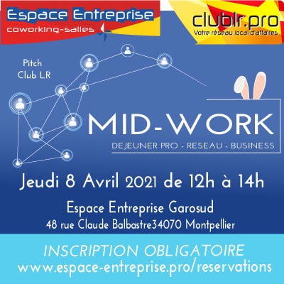 Le club LR vous invite à son Mid-Work du 8 avril de 12h à 14h au centre de coworking Espace Entreprise Garosud