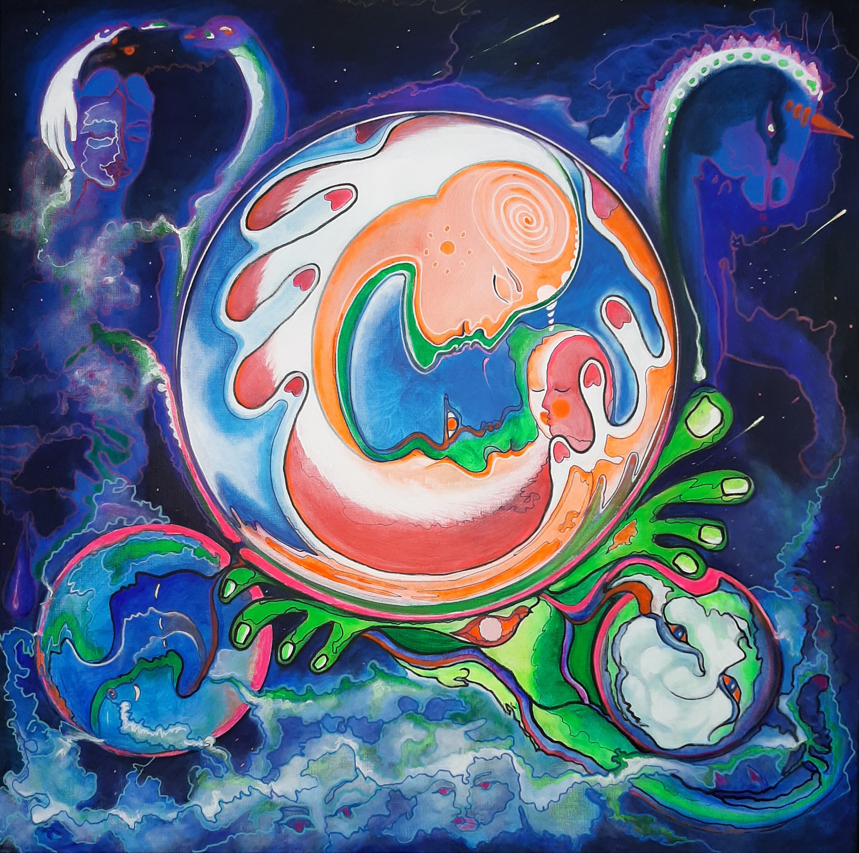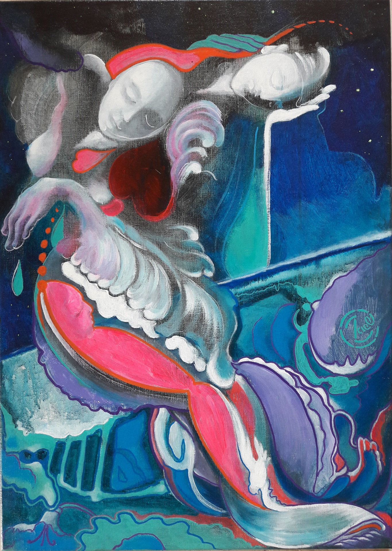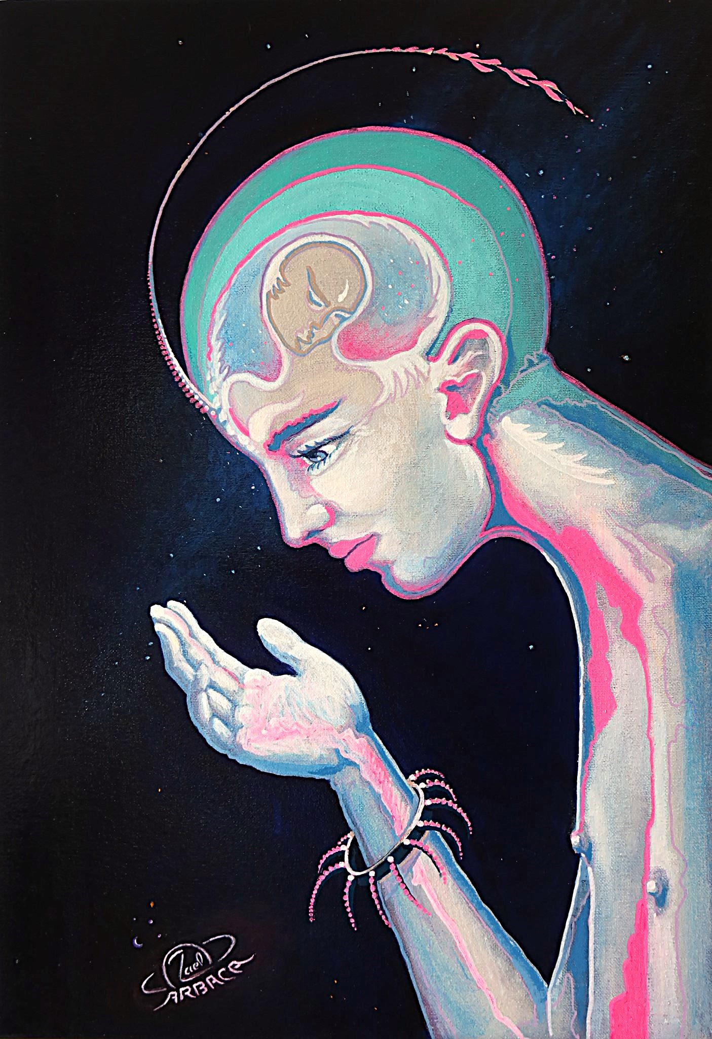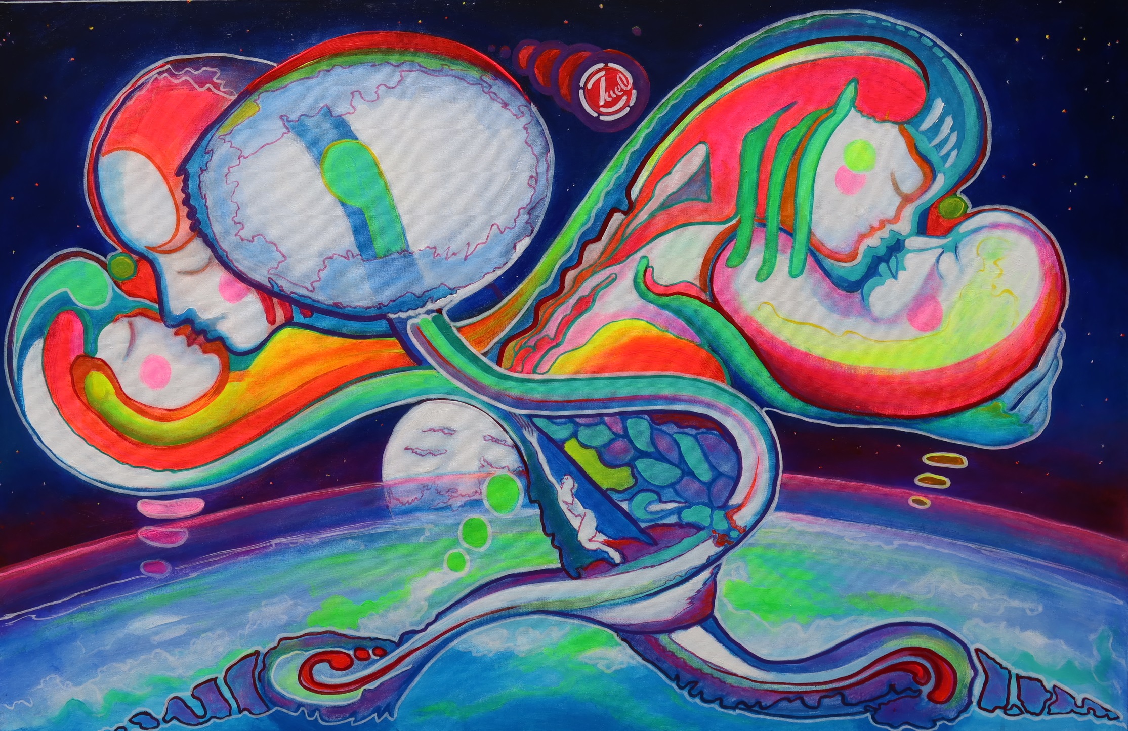 Harmonie correspondent à ce que je souhaite exprimer à travers ma peinture. Peintre depuis mon plus jeune âge, sculpteur et restaurateur d’œuvres d’art, mon parcours artistique est éclectique et passionné. J’ai toujours été attiré par le cosmos et le surréalisme. Je me sens relié à l’infini, en moi et autour de moi. Cela est pour moi une véritable source d’inspiration et d’éveil spirituel. Enveloppé par cet amour du cosmos, ce grand univers est devenu mon ami, ma source fondamentale infinie de créativité. Je définis ma peinture de cosmosophique (sagesse du cosmos). Je créé une transmission artistique, poétique, méditative en relation avec l’infiniment petit et l’infiniment grand.