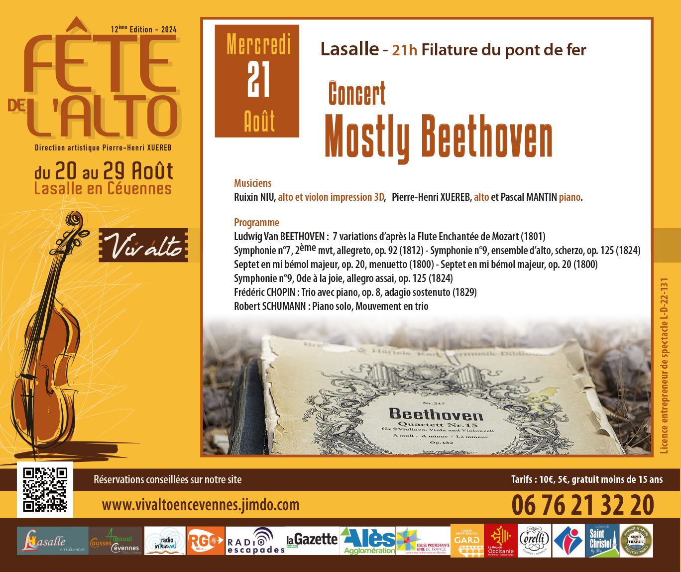 Tarifs : 10€, 5€, gratuit moins de 15 ans.