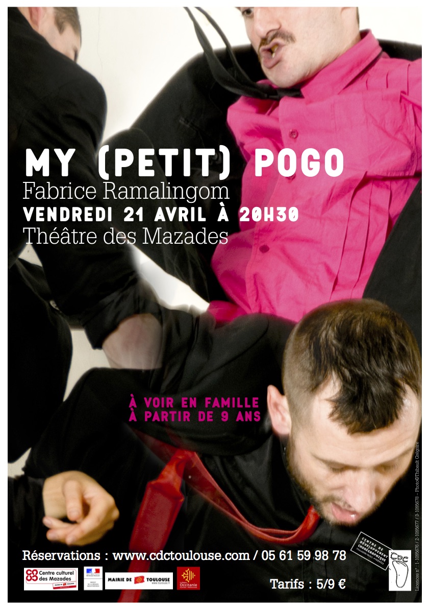 Cette performance prend d’abord la forme d’une conférence. Les principes chorégraphiques et les outils qui constituent cette pièce sont expliqués et simultanément performés sur le plateau. Ce sont autant de clés qui permettent aux jeunes esprits une meilleure compréhension de l’écriture chorégraphique. Puis cette première forme bascule subrepticement vers une forme écrite, une forme spectaculaire : My (petit) Pogo.