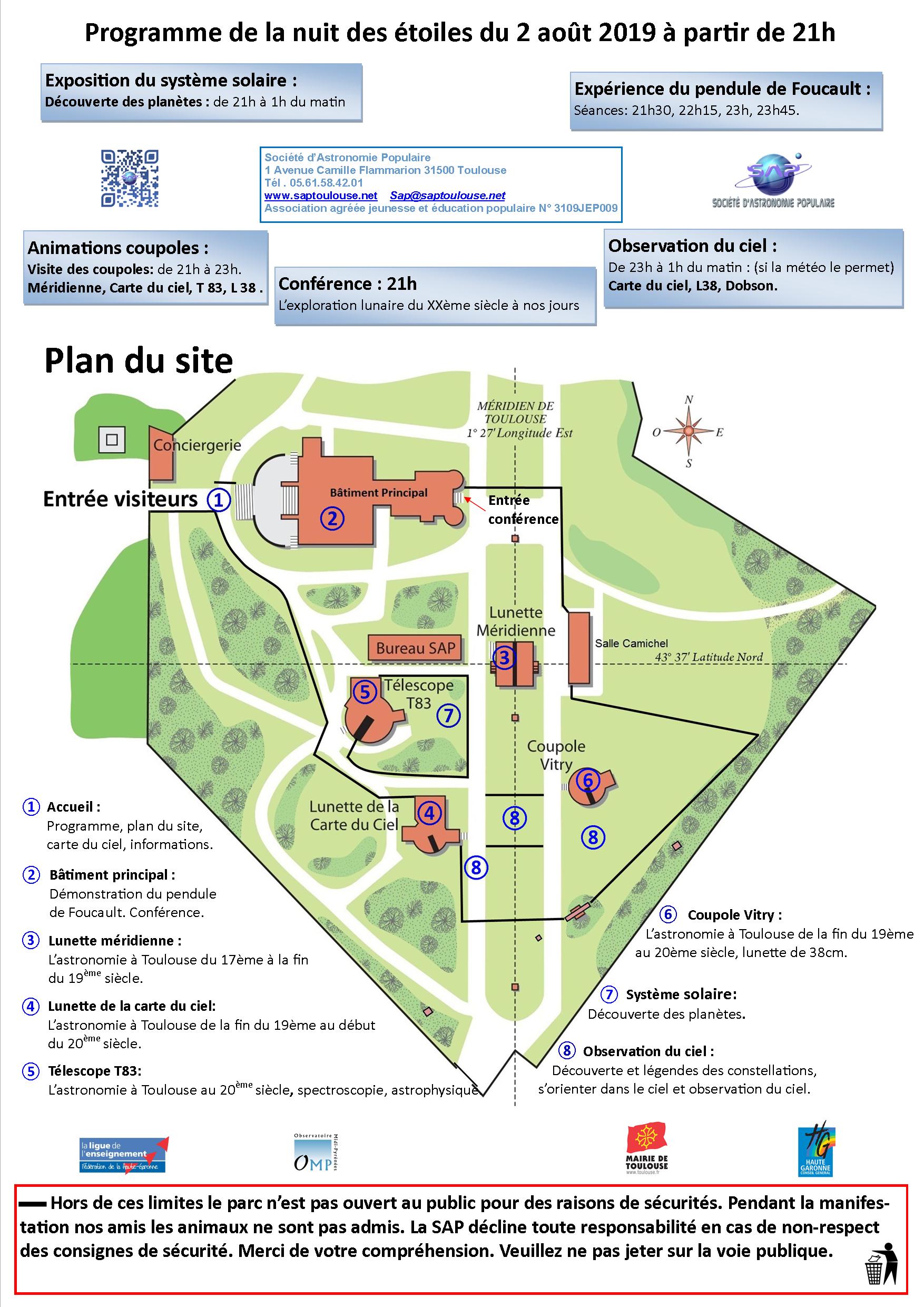 Vous pourrez participer aux visites commentées des coupoles et de leurs instruments. Il y aura des observations du ciel (si la météo le permet), une exposition du système solaire, des démonstrations du pendule de Foucault (un ticket d’entrée est à récupérer) et une conférence sur le thème « L’exploration lunaire du XXème siècle à nos jours » par Hadrien Dupuis à 21h.