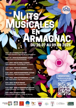 Les Nuits Musicales en Armagnac sont le grand rendez-vous classique d’été gersois depuis 55 ans. Elles proposent un accent toujours plus prononcé sur l’art lyrique sous toutes ses formes : des plus grands chefs-d’œuvre aux formes intimistes, de la musique baroque au jazz, des ateliers pour les artistes en herbe aux concerts des plus grands artistes mondiaux, les NMA enchanteront encore les soirées d’été dans les plus beaux lieux du patrimoine gersois.