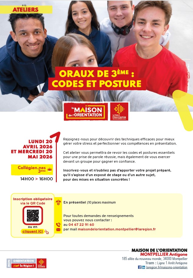 Inscrivez-vous et n’oubliez pas d’apporter votre projet préparé, qu’il s’agisse d’un exposé de stage ou d’un autre sujet, pour des mises en situation concrètes !