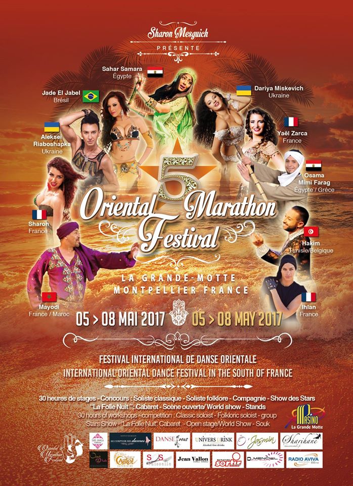 Pour la 5ème année consécutive, Sharon Mesguich et l’Association Oriental Marathon présentent l’Oriental Marathon Festival. Ce festival de danse orientale international propose 30h de stages avec les artistes les plus renommés de la danse orientale, 3 spectacles différents avec plus de 150 danseurs internationaux réunis sur scène !